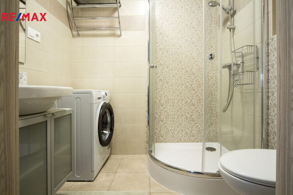 K pronájmu nabízíme příjemný byt o velikosti 34 m2 s velkou terasou (23 m2) ve druhém podlaží novostavby v Letňanech. Byt se pronajímá zařízený dle fotografií. V kuchyni je k dispozici malá indukční ploténka na vaření, mikrovlnka s horkovzdušnou troubou, lednice. Koupelna se sprchovým koutem je společná s WC, nachází se zde i pračka. V předsíni stojí velká vestavěná skříň. Z pokoje je možné vstoupit na prostornou terasu orientovanou na jihovýchod.