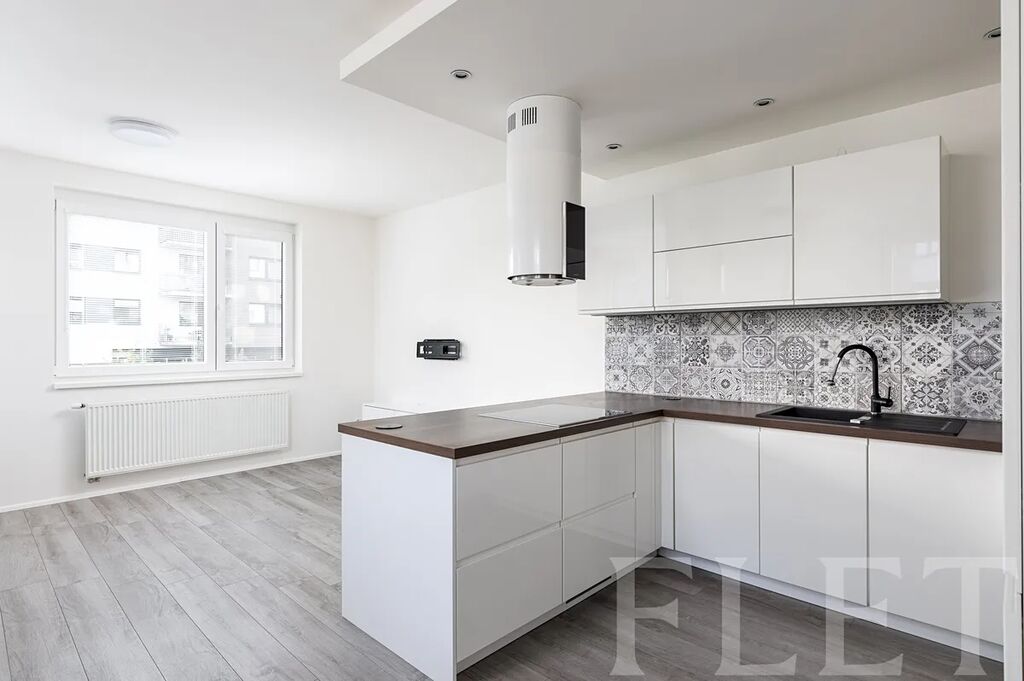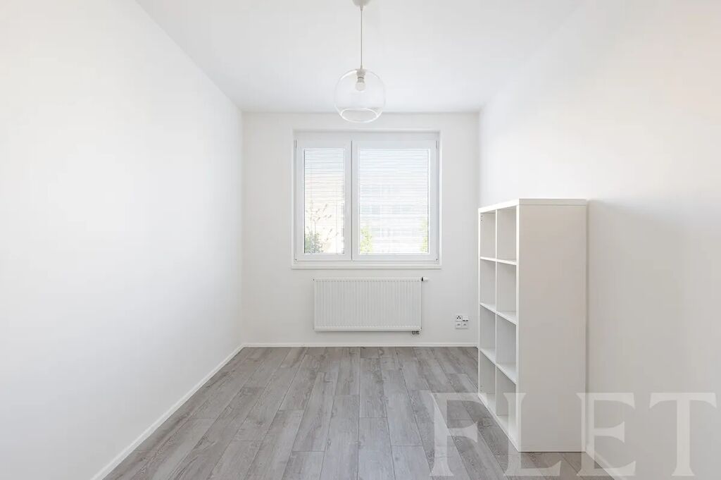 Při vstupu do bytu vás uvítá prostorná chodba, odkud se dostanete do všech pokojů. Světlý obývací pokoj je propojen s moderním kuchyňským koutem, který nabízí všechny nezbytné spotřebiče a dostatek úložného prostoru. Součástí je i jídelní část s jídelním stolem a židlemi. Zbylé tři pokoje můžete využít např. jako ložnici, pracovnu a dětský pokoj. V jednom z pokojů je velká vestavěná šatní skříň, v druhém vás nadchne soukromá toaleta. V druhé koupelně si budete moci užívat relax ve vaně a jistě vás potěší přítomnost pračky a sušičky. Posledními místnostmi jsou oddělená toaleta a praktická komora. Velkou předností bytu je hezká rohová terasa s venkovním nábytkem a s výhledem do klidné zástavby. Jak již bylo zmíněno, s parkováním si starosti dělat nemusíte, k bytu náleží garážové stání přímo v domě.