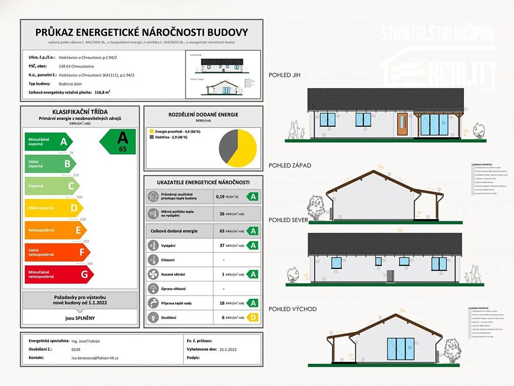 Jmenuji se Michal Müller a jsem obchodní zástupce společnosti Stavitelství Kašpar s.r.o. Rád bych vám představil exkluzivní nabídku novostavby rodinného domu v obci Holešovice, okres Chrudim. Jedná se o moderní a energeticky mimořádně úsporný rodinný dům o dispozici 4+kk s užitnou plochou 95,8 m2 s pozemkem o rozloze 862 m2. Tento dům je ideálním spojením komfortního bydlení, úspornosti a klidné lokality.