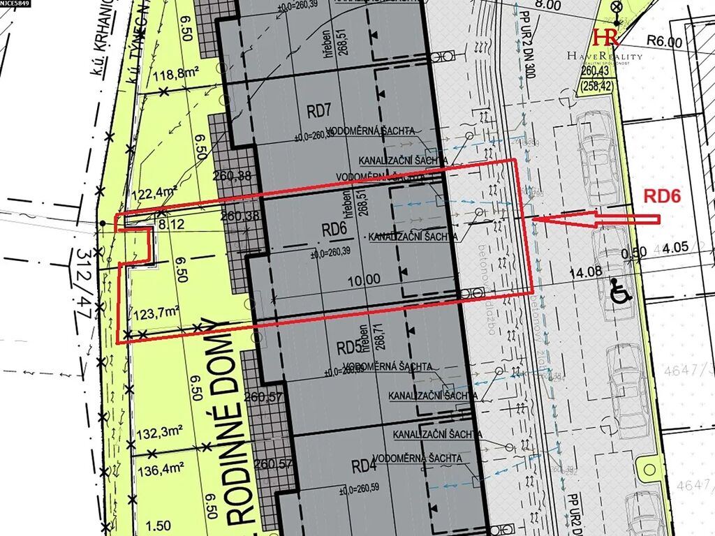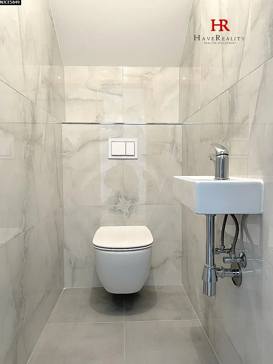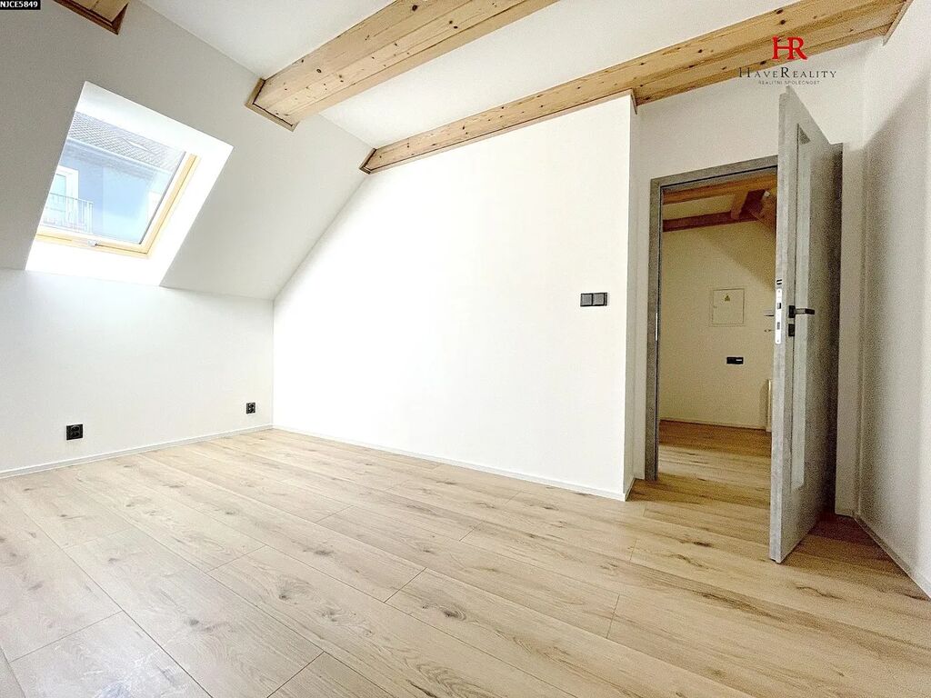 Nabízíme ke koupi byt o dispozici 5kk se zahradou, terasou a parkovacím stáním v žádané lokalitě, Chrást nad Sázavou, část obce Týnec nad Sázavou, okr. Benešov. Byt se nachází v řadovém domě (viz plánek – RD6) se samostatným číslem popisným, postaveném na obdélníkovém pozemku o celkové výměře 134 m2. Zastavěná plocha domem cca 65 m2. Užitná plocha domu cca 110 m2, zahrada za domem cca 42 m2 (z toho dlážděná terasa cca 12 m2), dále pozemek se dvěma parkovacími stáními před domem. Vlastnictví osobní. Řadový dům, ve kterém se byt nachází je patrový a není podsklepený. Příjezdová komunikace – dlážděná (obecní). IS – obecní vodovod, elektřina 230 V/400 V (25 A), spádová kanalizace, optický, telekomunikační kabel - internet. Topení – podlahové vytápění, tepelné čerpadlo vzduch - voda, v podkrovní místnosti je tepelné čerpadlo vzduch - vzduch sloužící k topení i jako klimatizace. Ohřev vody je zajištěn dvěma bojlery (pro každé patro samostatně). Podlahy – dlažba, plovoucí podlaha (lamino). Interiérové dveře s obložkou. Okna – plastová (trojsklo), střešní okna dřevěná (trojsklo), v koupelně střešní okno plastové. Střecha – sedlová, střešní krytina plechová, zateplená (25 cm vata + PUR pěna). Schodiště do patra – beton, povrchová úprava dřevo, schodiště do podkrovní místnosti dřevěné. Dům je dvoupodlažní + podkrovní místnost. Obvodové zdivo Ytong 25 cm + zateplení šedým polystyrenem 14 cm. Dispozice bytu (řadového domu) 5kk. Přízemí – předsíň 5,4 m2, obývací pokoj s kuchyňským koutem 20,8 m2, technická místnost 6,8 m2, wc s umyvadlem 1,4 m2. 1. patro – hala 7,1 m2, schodiště 3,1 m2, ložnice 10,9 m2, pokoj I. 10,0 m2, pokoj II. 14,1 m2, koupelna s wc 8,1 m2. Podkrovní místnost 28 m2. V bytě jsou vyhotoveny rozvody TV, internetového signálu, v každé místnosti termostat na řízení teploty. Na pozemku před domem (tedy u vstupu) se nachází vydlážděný, částečně zastřešený prostor s možností parkování 2 automobilů. Na oplocené zahradě se nachází terasa a travní plocha, dále pak podzemní nádrž na dešťovou vodu (5 m3). Jedná se o velice hezké, klidné místo v blízkosti přírody a řeky Sázavy. Nedaleko bytu naleznete tenisové kurty, restauraci, prodejnu potravin, MŠ, poštu. ZŠ se nachází v Krhanicích vzdálených 1,5 km. Veškerá občanská vybavenost v 5 km vzdáleném Týnci nad Sázavou. Dobré spojení do Prahy, zastávka bus – PID, nebo vlak (vlaková zastávka Krhanice). Vzdálenost do Benešova je cca 10 km a do Prahy cca 30 km. PENB – třída B – velmi úsporná. Nemovitost je již zkolaudována, k nastěhování ihned. Nemovitost se prodává bez vybavení nábytkem. Ve fotodokumentaci u nabídky jsou použity i vizualizační fotky. Možnost odpočtu DPH, možnost koupě zděné garáže (25 m2) nacházející se v blízkosti bytu. V případě zájmu Vám zprostředkujeme sjednání hypotéky.