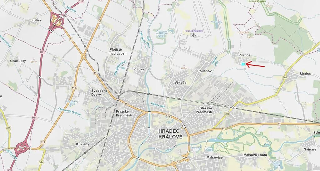 Na pozemku parc. č. St. 51 stojí stavba výroby č.p. 61 a na pozemku parc. č. St. 52 stojí zemědělská stavba bez čp/če. Pozemky jsou v katastru nemovitostí vedeny jako zastavěná plocha a nádvoří. Na výše uvedené stavební pozemky navazuje pozemek parc. č. 247/23 (ostatní plocha), který s nimi společně tvoří jeden funkční celek. Celková plocha pozemků je 7 866 m2. Pozemky jsou rovinaté, travnaté, neudržované a oplocené. Pozemky jsou přístupné přes pozemek parc. č. 434/1, který je ve vlastnictví statutárního města Hradec Králové a dále přes pozemky parc. č. 247/5, parc. č. 247/43 a parc. č. 34/7, které jsou v podílovém spoluvlastnictví včetně povinného.