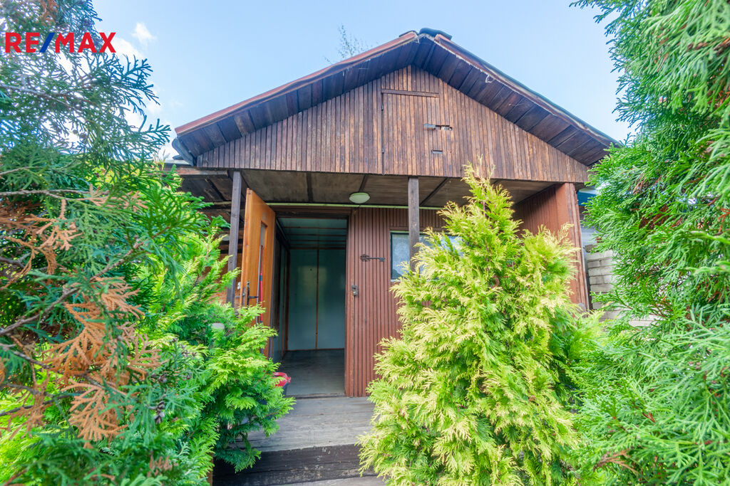 Součástí pozemku je zahradní domek se zastavěnou plochou 39m2 , dále je k dispozici přípojka elektřiny a vody. Příjezd k pozemku je po travnaté cestě ve vlastnictví města, parkování možné přímo na zahradě nebo před ní.