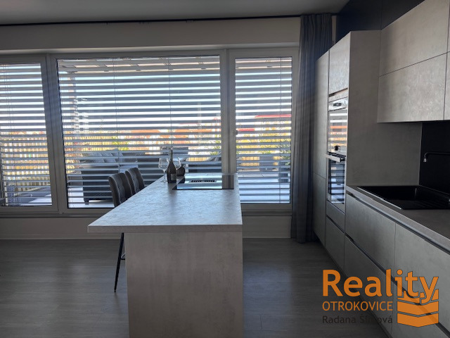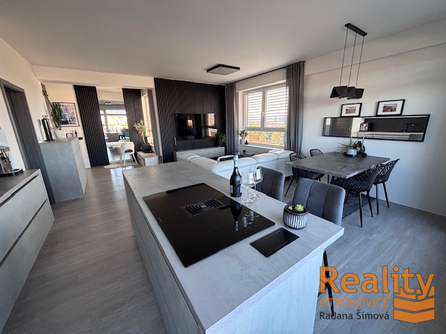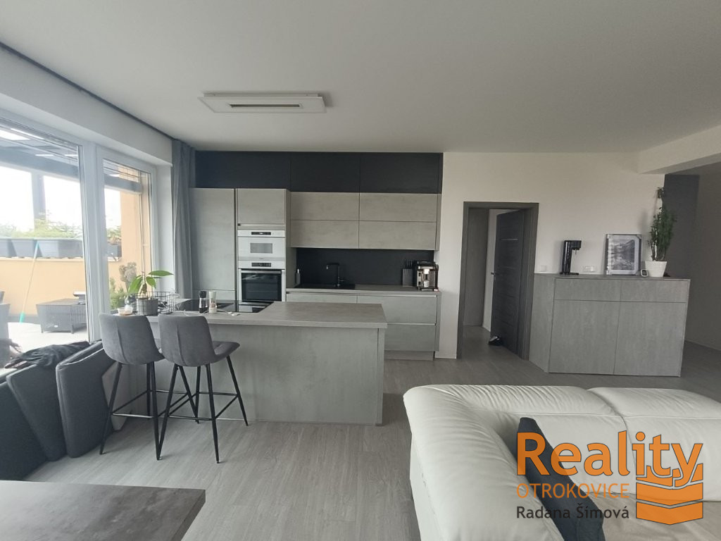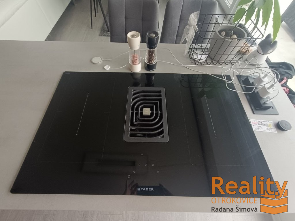 Kuchyně oddělená „ostrůvkem se zabudovanou varnou deskou s digestoří“ od obytného prostoru, linka vybavená všemi spotřebiči. Byt je energeticky velmi úsporný, PENB „B“, což představuje nízké provozní náklady.