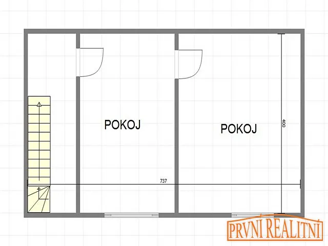 přízemí – chodba, obývací pokoj s kuchyňským koutem, koupelna se sprchovým koutem a WC