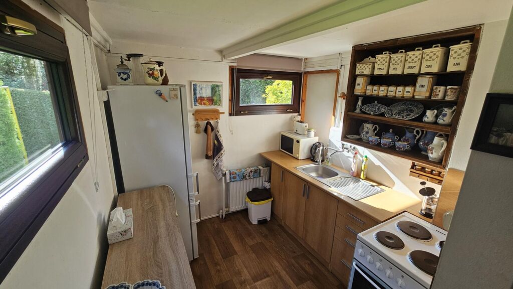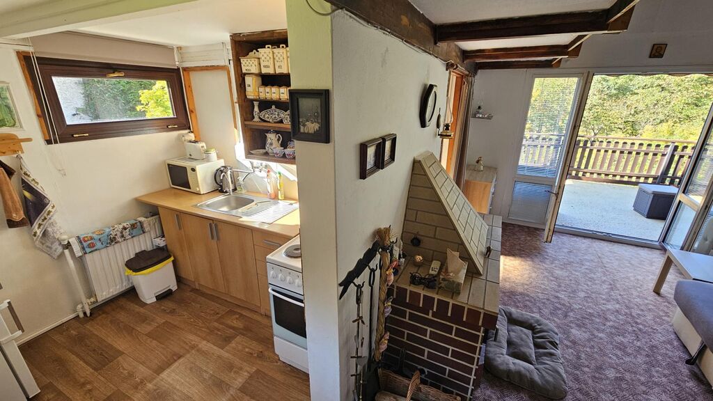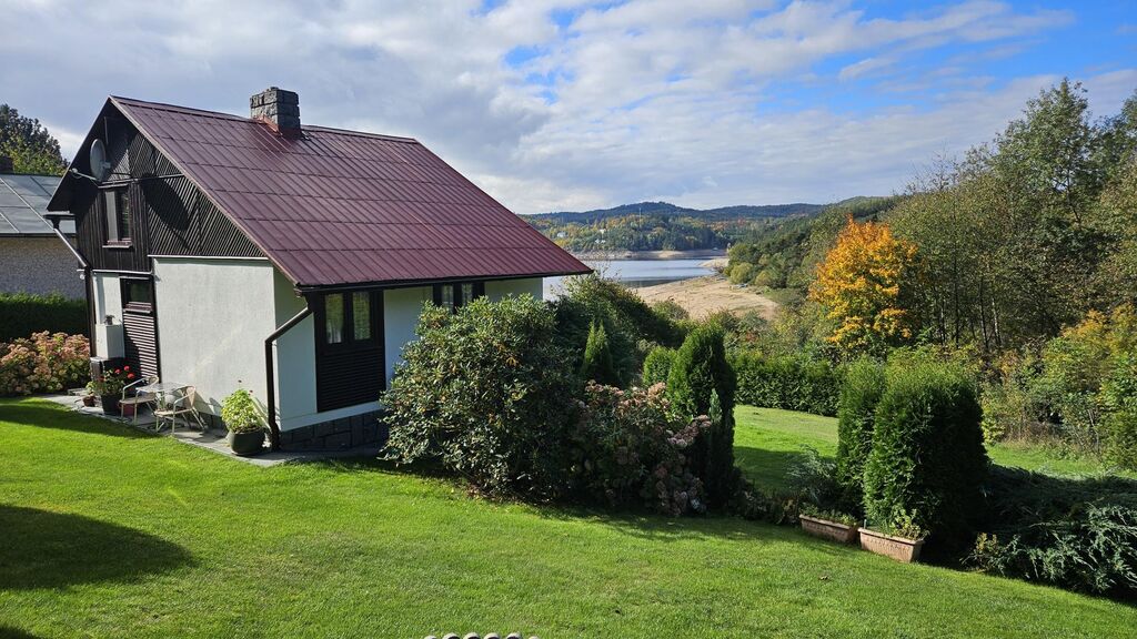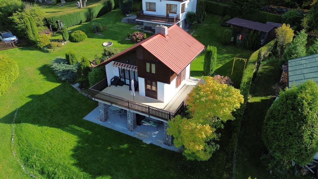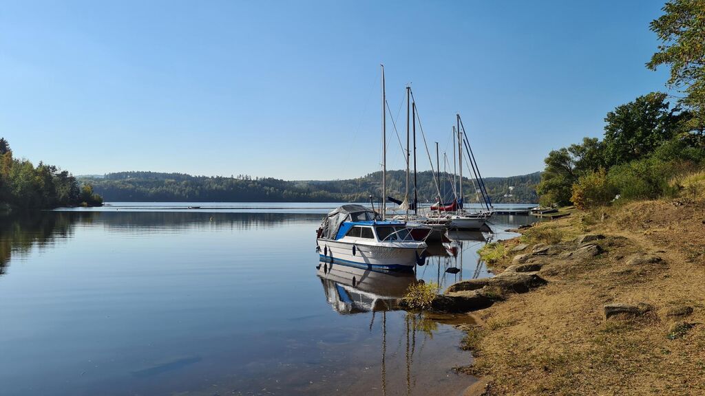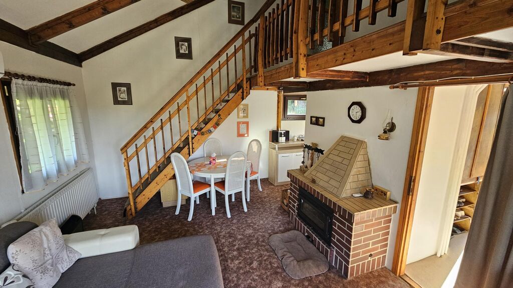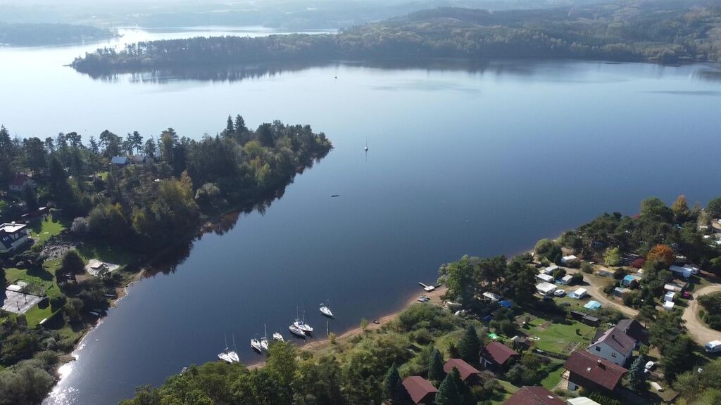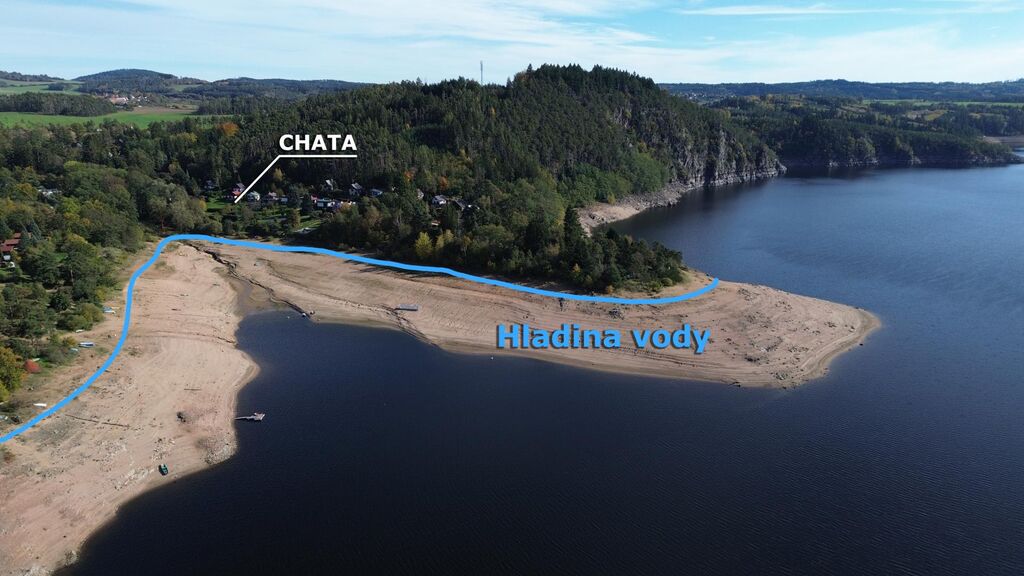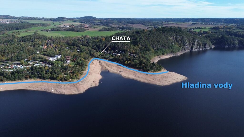 Prodej rekreační montované chaty na jedinečném místě na břehu Orlické nádrže cca 100 m od jezera - jedinečná poloha v části - Podskalí u Voltýřova. Z pozemku okolo chaty je vstup - branka - přímo k vodě. V současné době je hladina nádrže velice nízko z důvodu opravy hráze orlické přehrady. Na fotkách je naznačená normální hladina vody. V zátoce kotví za normálního stavu vody plachetnice a hodně lidí má na břehu svojí loďku - člun / možnost člun parkovat na pozemku u chaty /. Cca 400 m od chaty je za normálního stavu vody molo a je zde zastávka parníku. Chata je v dobrém technickém stavu a je o velikosti 4 + 1 s koupelnou a WC, garáží a úložnými prostory. Popis chaty : přízemí - místnost kde je koupelna a WC, garáž a úložné prostory. Zv. přízemí - 1 ložnice, velká hlavní obytná místnost s krbem a vstupem na velkou terasu, kuchyň. Podkroví - 2 ložnice. Vybavenost - el. 220/380V, vlastní studna a jímka, klimatizace, ústřední topení - kotel na pevná paliva a radiátory. Přístupová zpevněná cesta cca 2 km vede z obce Voltýřov až k chatě a parkuje se na vlastním pozemku u chaty. Celková výměra pozemku je 749 m2 - zast. plocha je 50 m2 + udržovaná zahrada. Do obce Klučenice a Voltýřov jezdí autobus - Příbram, Praha, Písek. Ideální chata pro rybáře, jachtaře nebo pro milovníky vodního sportu. Prohlídky chaty po domluvě.
