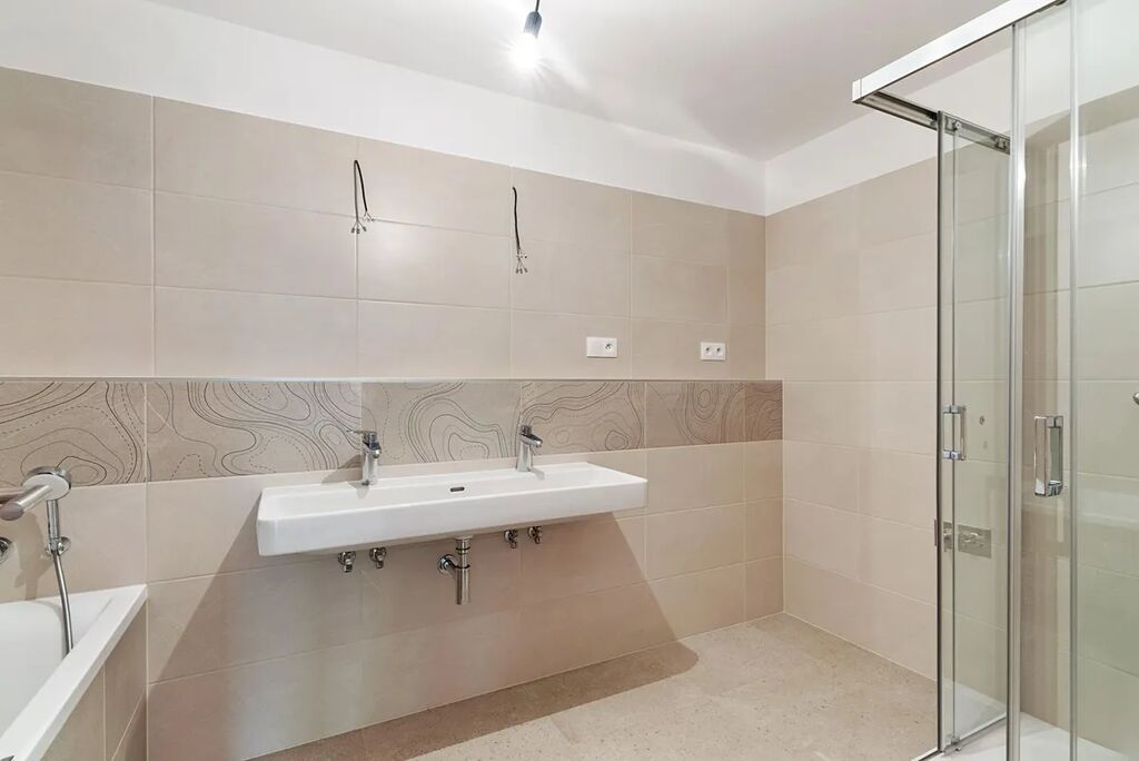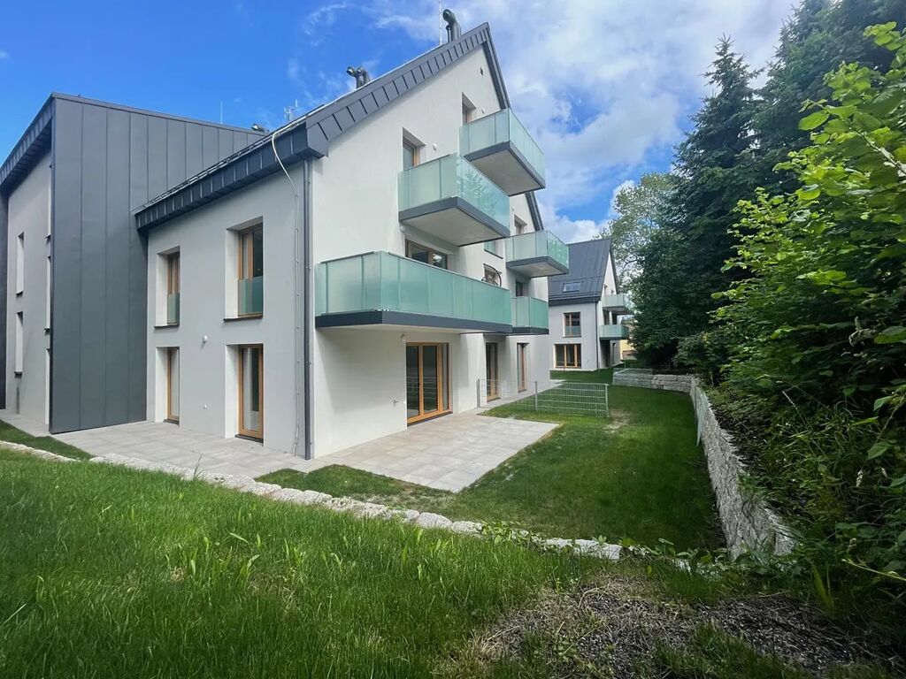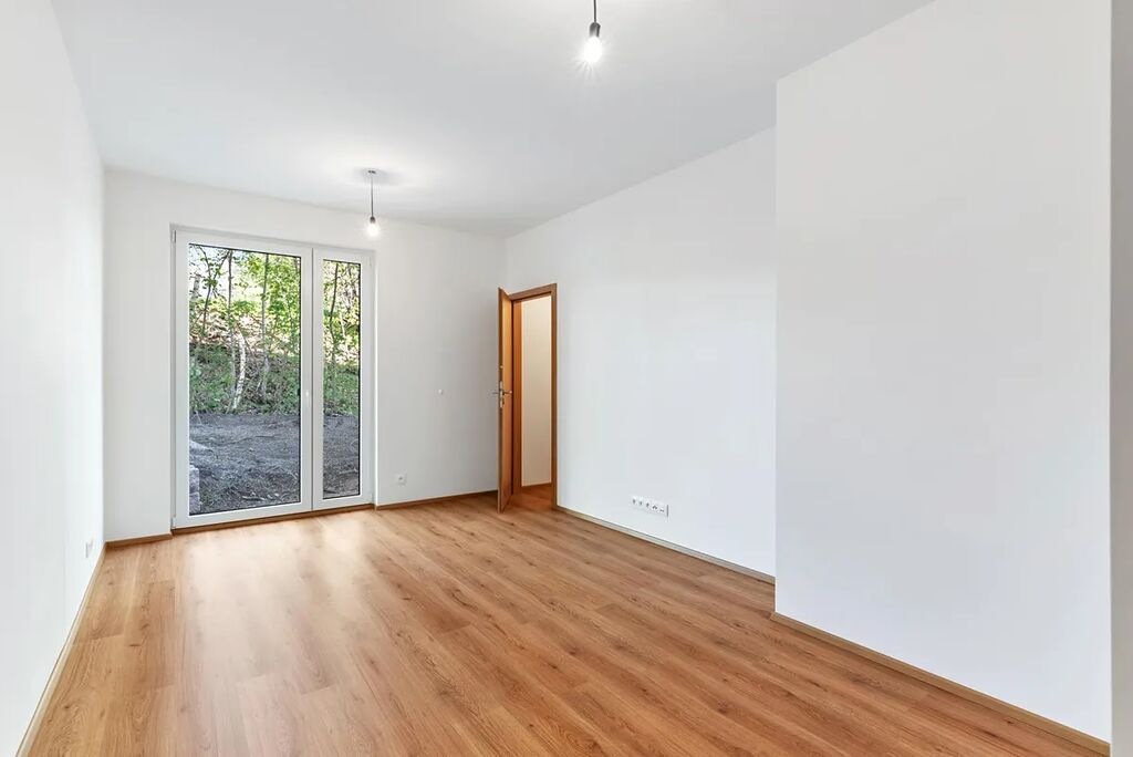 Díky francouzským oknům s izolačními trojskly je tento byt nádherně přirozeně prosvětlen a umožňuje vstup na zahradu ze všech místností. Byt je vybaven podlahovým vytápěním s termostatem v každé místnosti, což vám umožní efektivní regulaci teploty podle vašich potřeb. Kuchyňská linka není součástí vybavení, můžete si ji navrhnout přesně podle vlastních představ a stylu. K bytu náleží prostorná sklepní kóje umístěna v 1. podzemním podlaží.