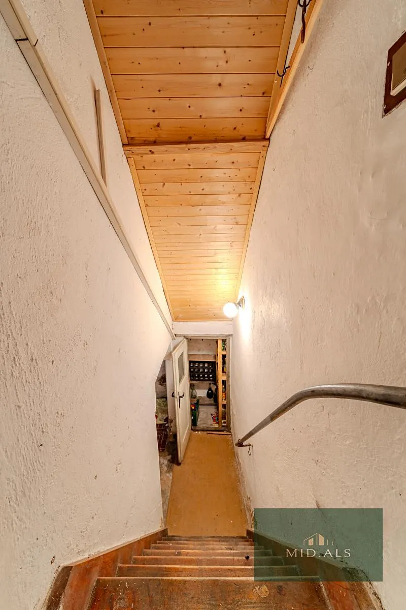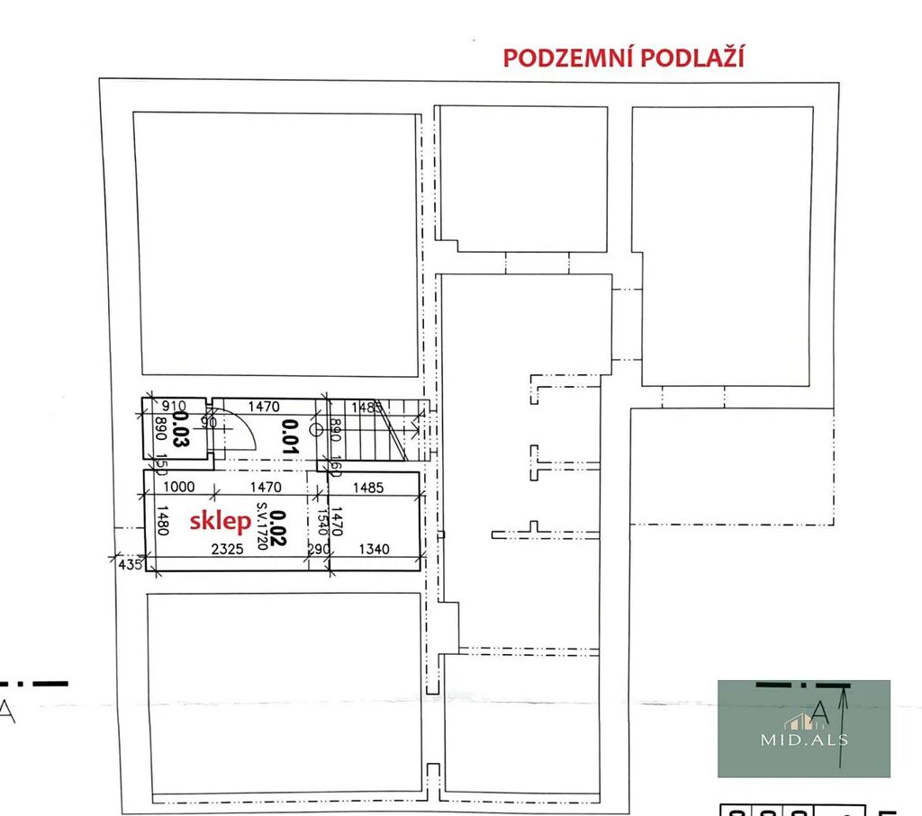 V 1.nadzemním podlaží se nachází vstupní veranda, větší komora, spíž, WC, koupelna, dva pokoje a kuchyně.