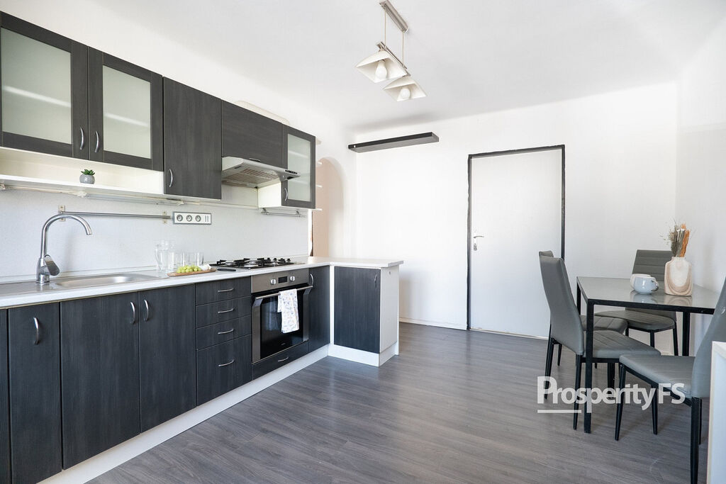️ Částečně vybavený – kuchyňská linka se spotřebiči, stůl a židle, skříňky v kuchyni i na chodbě, lednice (viz foto)