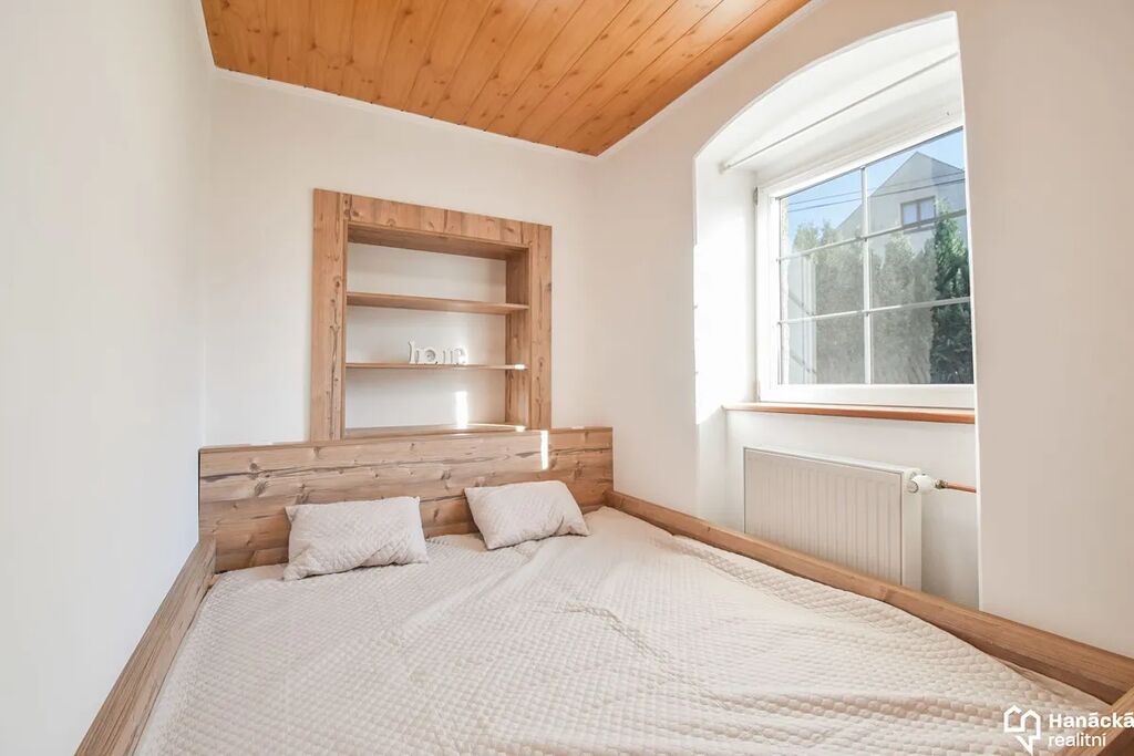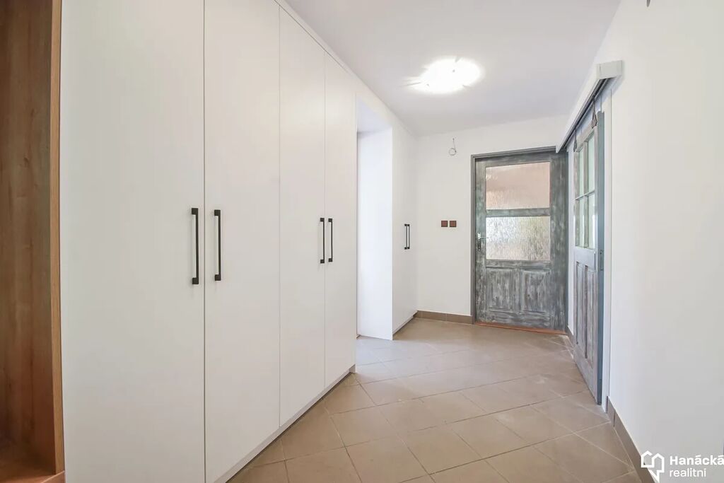 Prodej rodinného domu v Hlásnici u Šternberka. Dům se nachází v klidné lokalitě s výbornou dostupností – do Šternberka se pohodlně dostanete během několika minut jízdy autem. Jedná se o stylově zařízené bydlení s velkou garáží a kompletně novým vestavěným nábytkem na míru. V přízemí dům nabízí dispozici 3+kk, kde jsou 2 neprůchozí ložnice a obývák spojený s kuchyní. Ve spodní části domu je koupelna se sprchovým koutem, technická místnost a sklípek. Půdní prostor domu nabízí dostatek místa pro případnou vestavbu obytného podkroví podle vašich představ. Garáž o rozloze cca 45 m2 disponuje automatickými garážovými vraty a je dostatečně velká pro 2 - 3 automobily. Z garáže je přímý vstup do domu. U domu je pergola, která zastřešuje hlavní vstup a z druhé strany malá zahrádka s jabloní a přístřeškem. O vytápění se stará krb a krbová vložka s teplovodním výměníkem. Ohřev teplé vody zajišťuje elektrický bojler. Pro více informací nebo sjednání osobní prohlídky kontaktujte makléře zakázky.