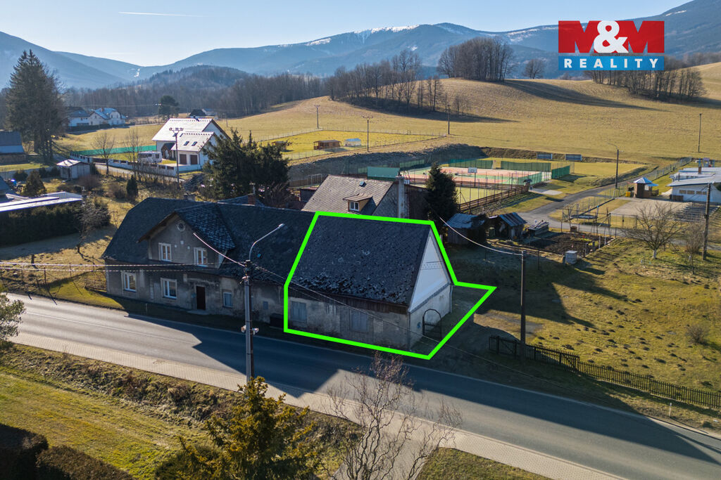 Ve výhradním zastoupení nabízíme k prodeji chalupu v obci Domašov u Jeseníka, která je určena k celkové rekonstrukci. Tento dvojdomek je situován v rušné části obce, což zajišťuje vynikající dostupnost ke všem potřebným službám, jako jsou obchody, školy a další zařízení. Chalupa je postavena z kombinace různých materiálů a vyžaduje rozsáhlé opravy. Nabízí tři místnosti na jednom nadzemním podlaží, koupelna a toaleta jsou zvlášť a je zde místo i pro uskladnění různých věcí, nebo pro tvorbu další obytné místnosti. Kanalizace i vodovod je veřejný. El. hodiny i plynovod jsou odpojeny. Součástí prodeje je také 1/4 podíl zahrady o celkové ploše 499 m². Nemovitost je ideální pro ty, kteří hledají projekt k rekonstrukci a chtějí si vytvořit vlastní rodinné zázemí v oblasti Domašova. Zavolejte si o více informací a prohlídku. Zajistíme nejvýhodnější financování.