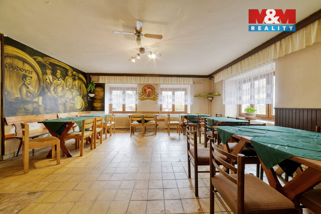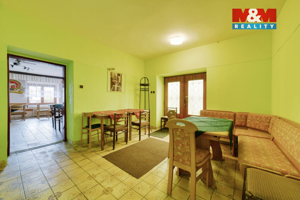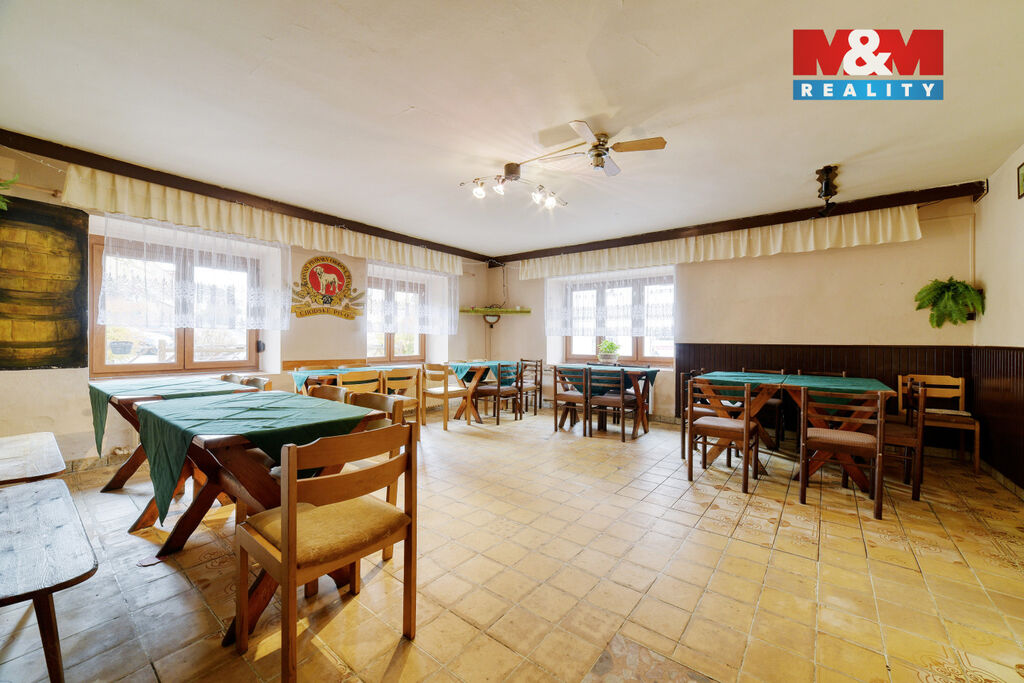Exkluzivně nabízíme prostorný rodinný dům v atraktivní lokalitě Lázní Kynžvart. Tato nemovitost se nachází v centru obce a nabízí široké možnosti využití. V přízemí se nachází kompletně vybavená restaurace se zázemím, v prvním patře prostorný byt a z půdy je možné vybudovat další bytové jednotky. K dispozici je také balkón s výhledem na okolí. Součástí prodeje je dále zahrada se stodolou, garáží, pergolou a bazénem. Dům je výborným zázemím pro velkou rodinu nebo jako vícegenerační bydlení, případně spojené i s podnikáním. Nemovitost je v dobrém stavu, vhodná k dalším úpravám dle představ nového majitele, dle způsobu budoucího využití. Díky své poloze v centru obce je rovněž ideální investiční příležitostí. Nepropásněte tuto jedinečnou příležitost na koupi tohoto všestranného domu v srdci menšího lázeňského města. Najdete zde kompletní občanskou vybavenost – školu, školku, obchody, sportoviště, obecní úřad atd. Více podrobnějších informací Vám rádi sdělíme při prohlídce.