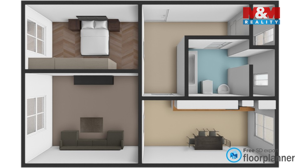 Nabízíme k pronájmu světlý a útulný byt 2+1 o rozloze 49 m², umístěný ve 3. patře menšího, udržovaného domu bez výtahu.