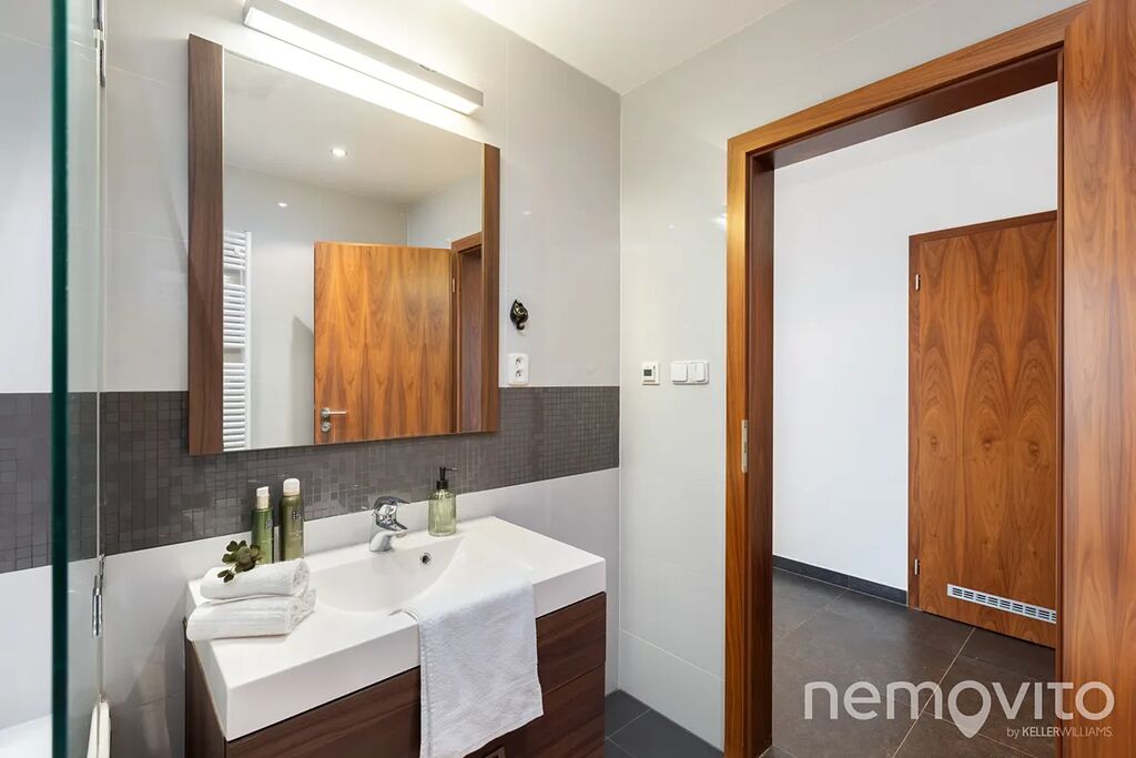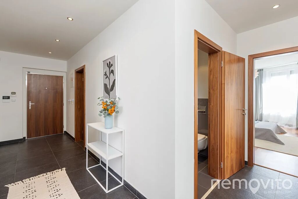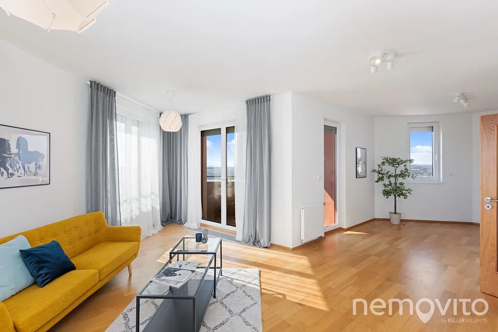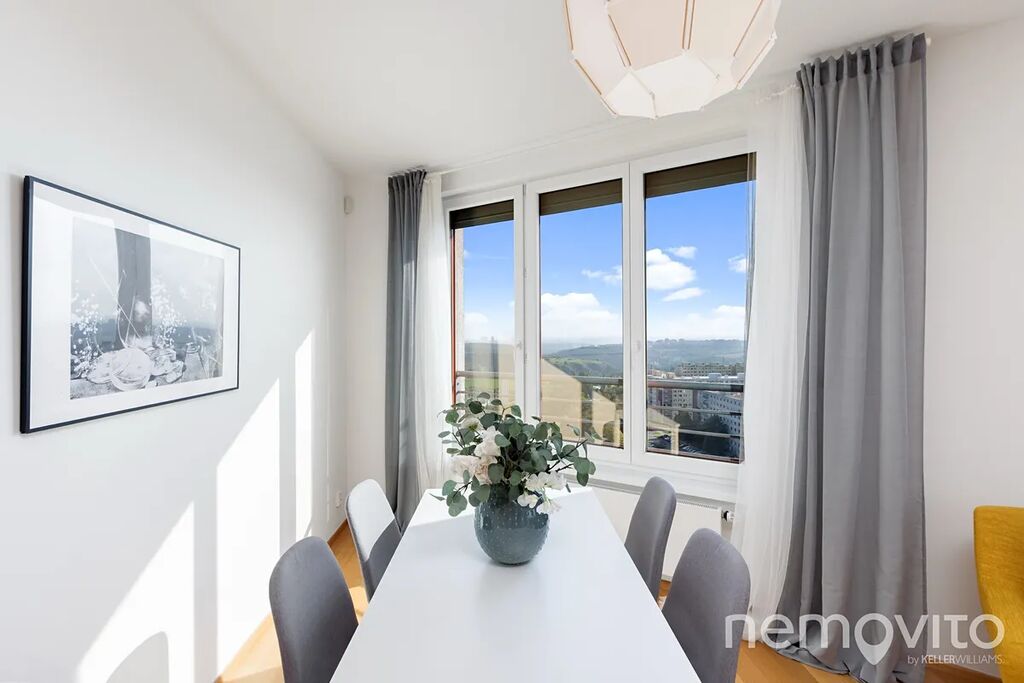 Byt s fantastickým výhledem na Prokopské údolí v sedmnáctém podlaží budovy Prague Towers. Velkorysá plocha 93 m2 (byt + sklep) je pro dispozici 3+kk skutečně neobvyklá, přičemž příslušenství doplňuje také balkon (4,9 m2, není započten do plochy), dvě garážová stání za sebou a u nich umístěný sklep (4,7 m2). Byl byl dokončen v roce 2011, nicméně do dnes byl užíván pouze dva roky, a je tak ve špičkovém stavu a prakticky bez známek používání.