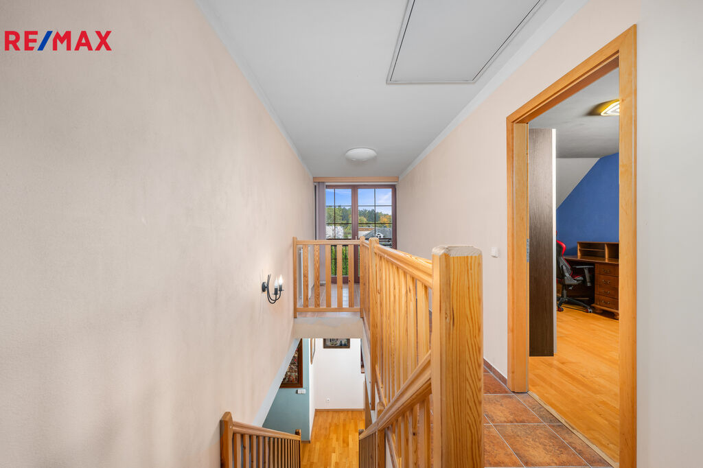Půda: přístupná z podkroví, výška cca 180 cm – ideální na uskladnění sezónních věcí.