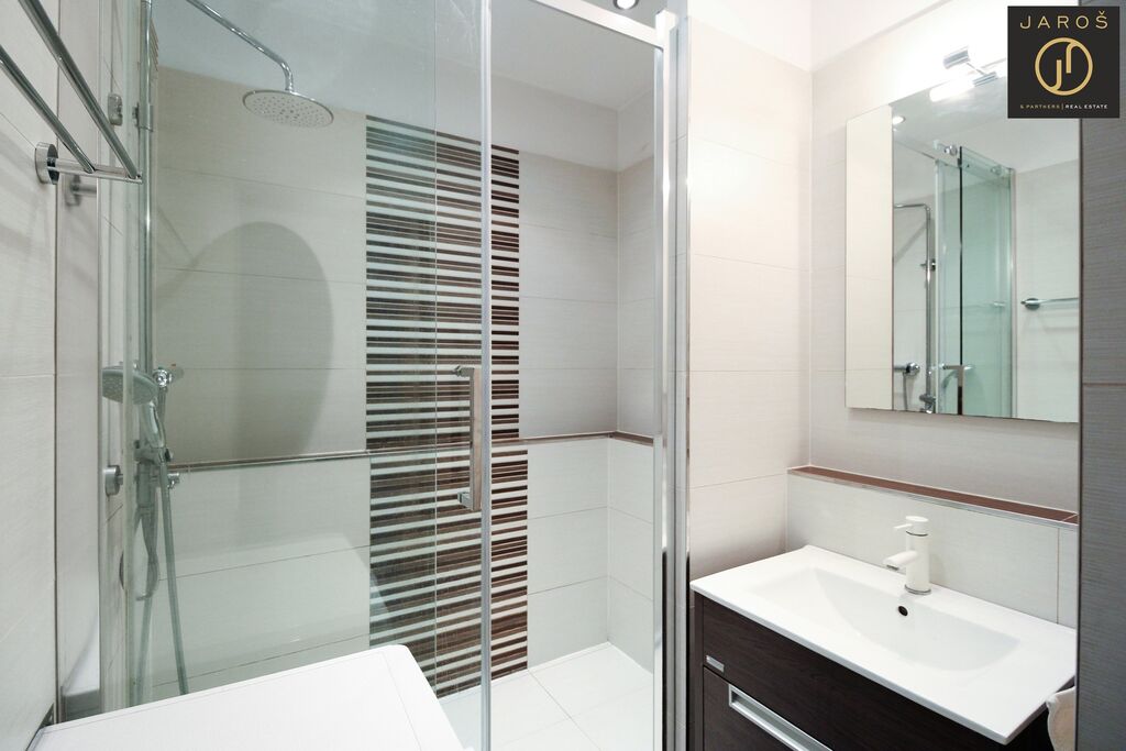 Největším bonusem je ovšem příslušenství v suterénu domu, které je za drobný poplatek přístupné všem obyvatelům. Najdete zde saunu, ping pong, knihovnu, dětský koutek, dámskou a pánskou posilovnu i místnost na pořádání oslav.