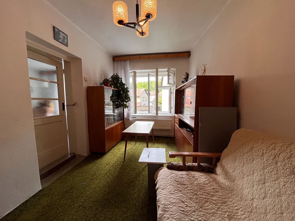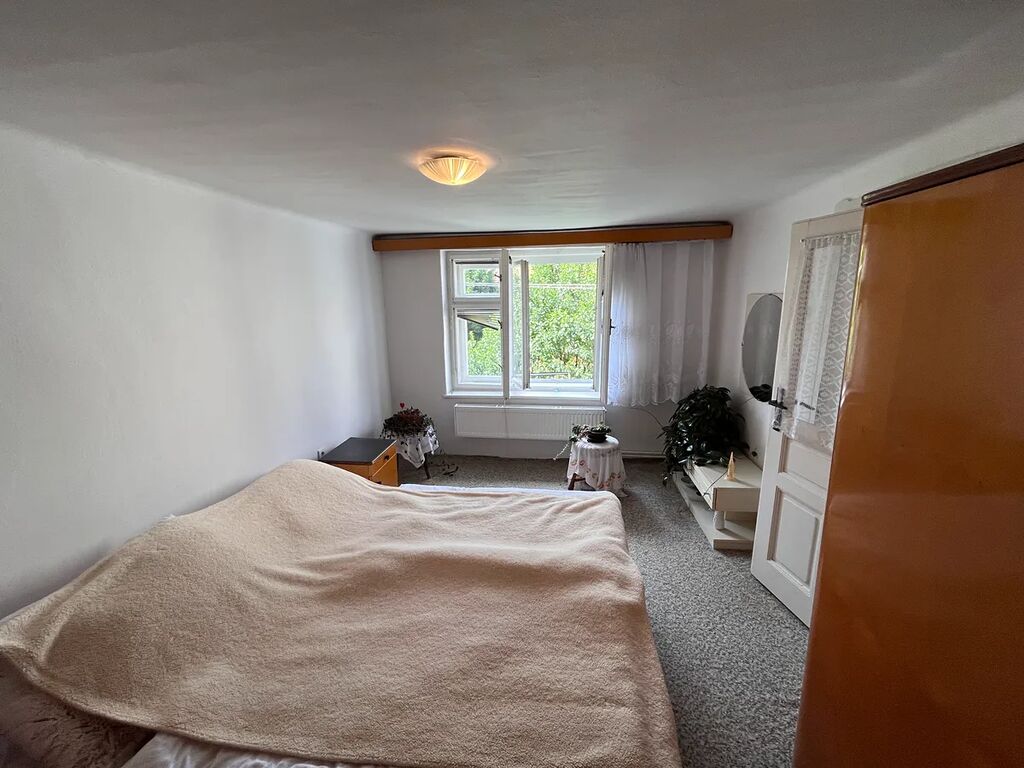 Dispozičně: V přízemí samostatná kuchyně + špajs a obývací pokoj, koupelna se sprchovým koutem a vanou, WC, vstupní zádveří. Dále po schodišti do patra: 3 průchozí pokoje, komora, půda.