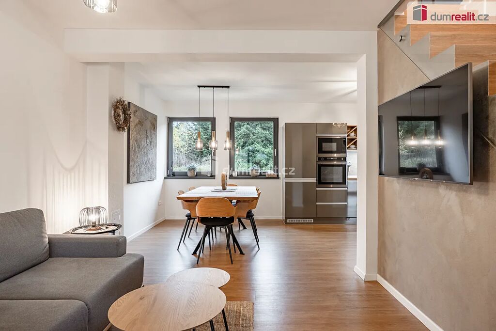 V přízemí se nachází prostorný obývací pokoj s kuchyňským koutem a jídelnou, vstupní chodba s vestavěnou skříní a samostatná toaleta.