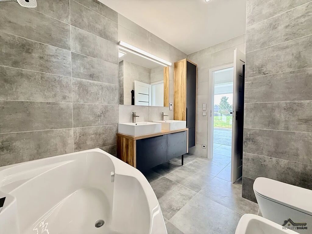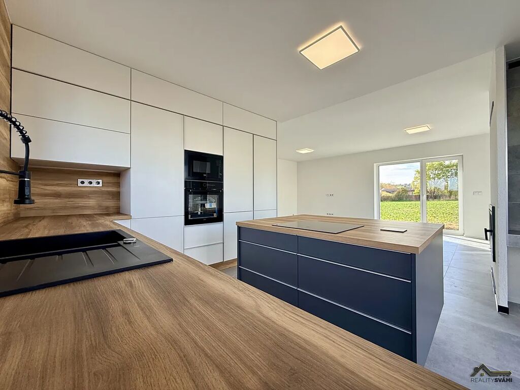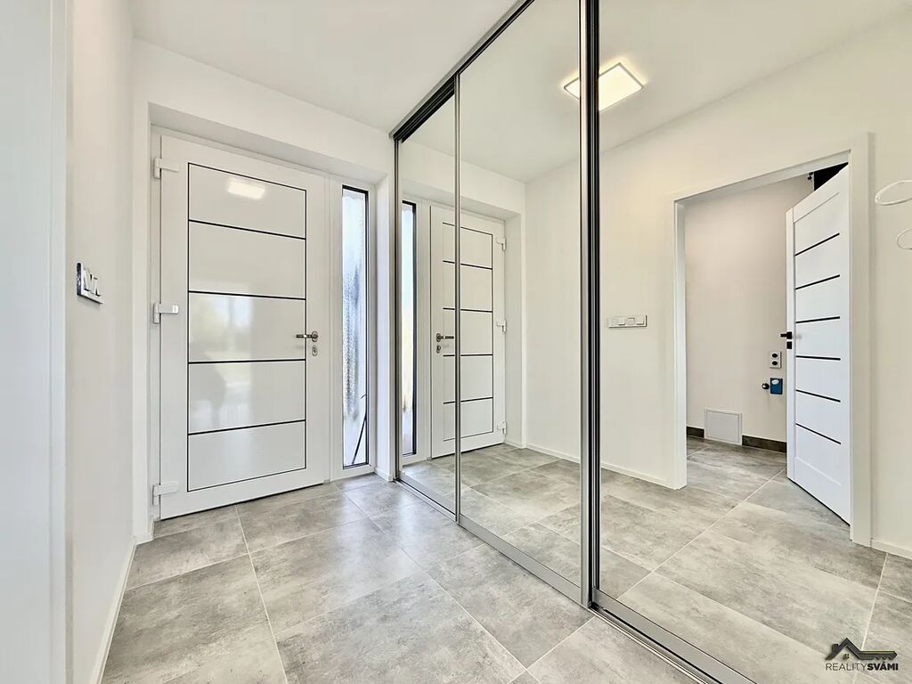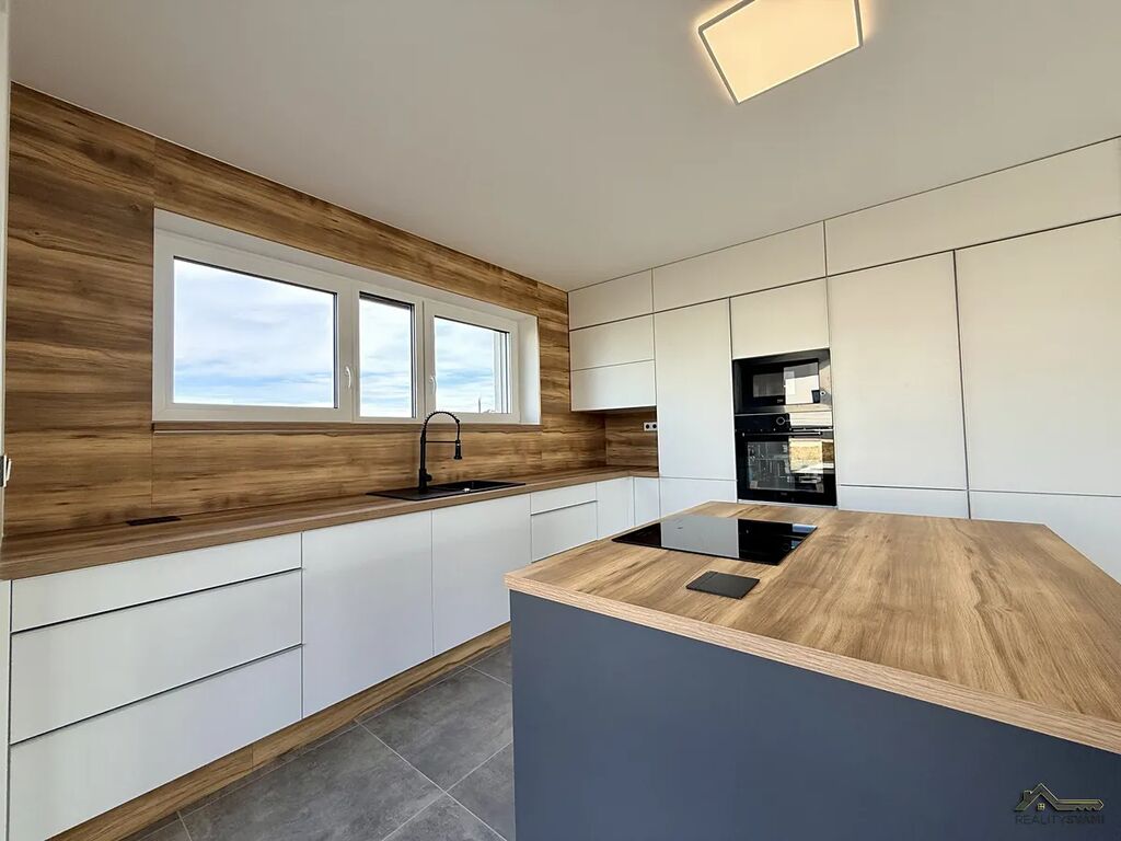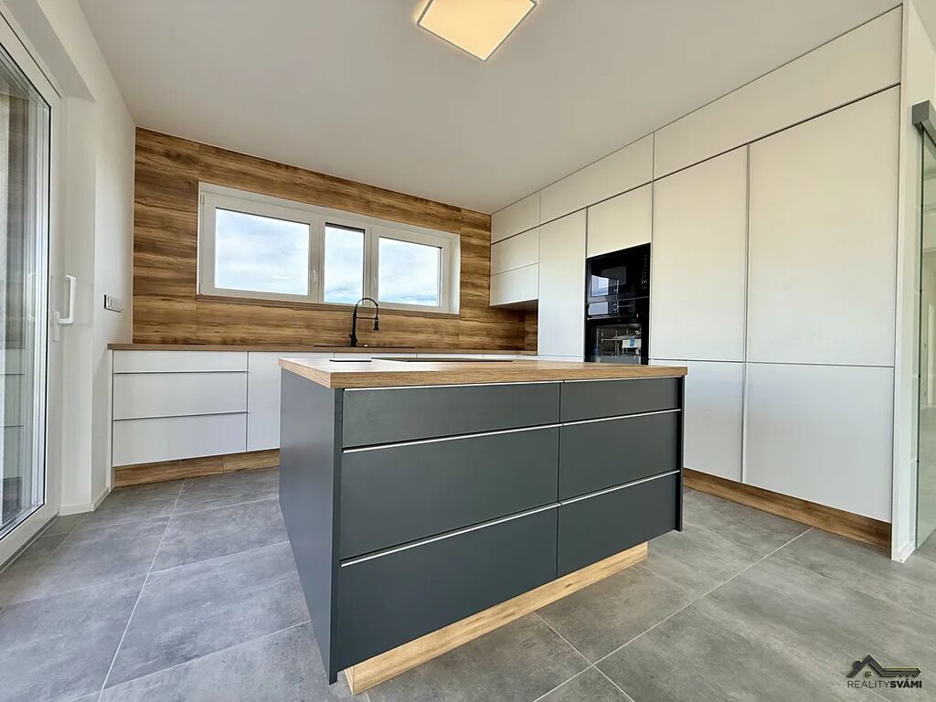 Nemovitost má základní vybavení, jako je kuchyňská linka s vestavěným i spotřebiči, ale i nadstandardní venkovní žaluzie na el. ovládání.