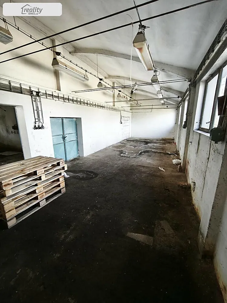 V prostoru je k dispozici rozvod napětí 230/400V, osvětlení a zásuvky, voda, podlaha betonová, izolovaná