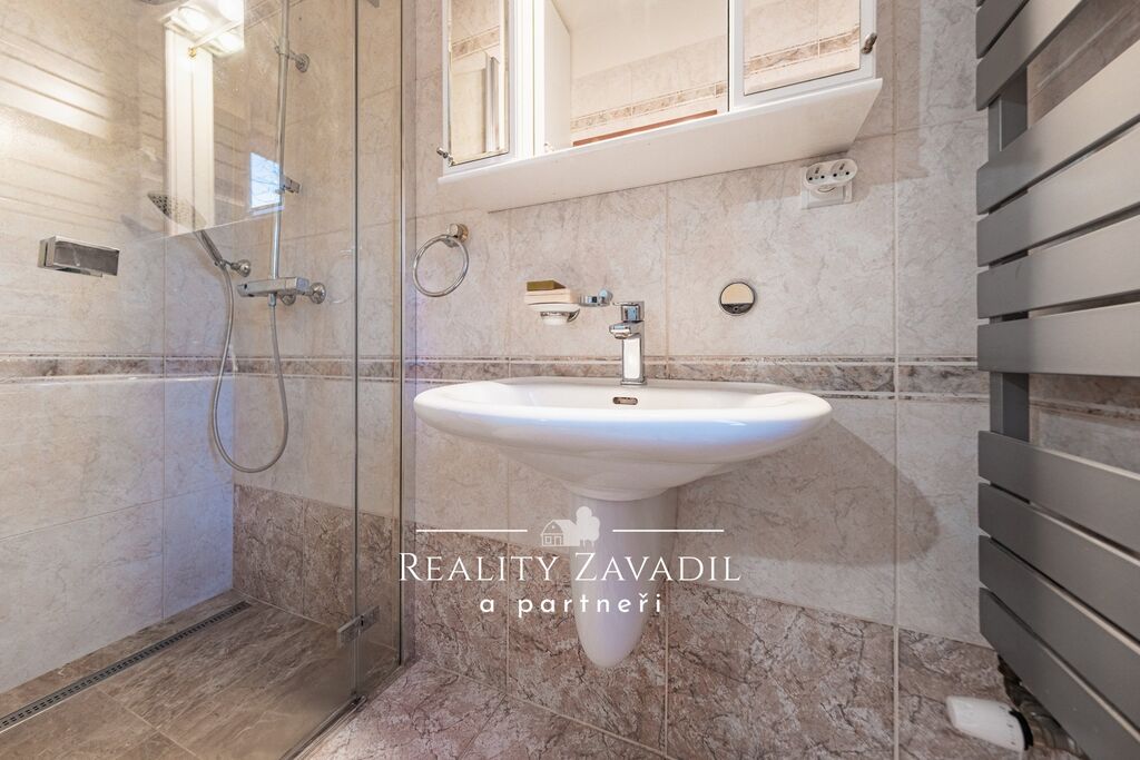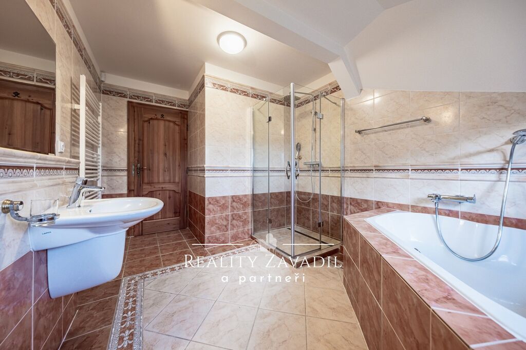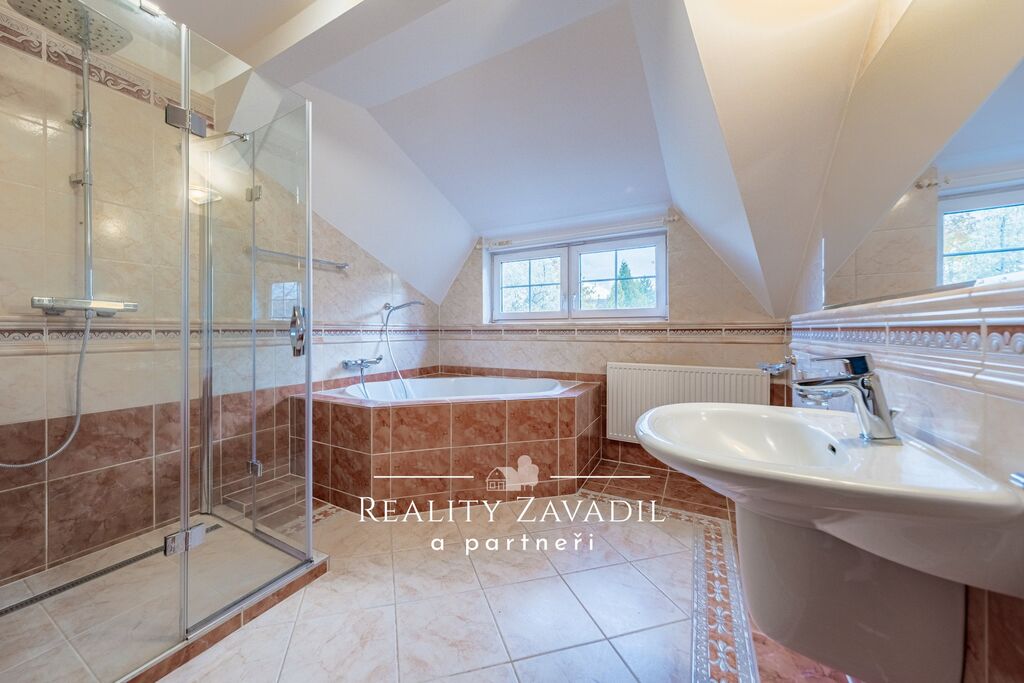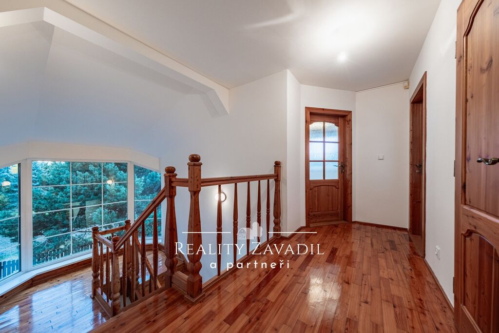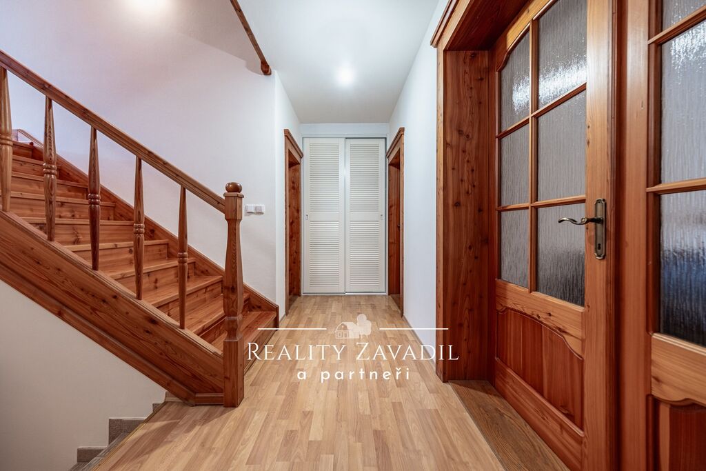 Dům je částečně podsklepený a má dvě nadzemní podlaží. V suterénu se nachází technické zázemí pro celý dům a sklad. V 1. NP je velkorysý obývací pokoj s kuchyní , ložnice s vlastní koupelnou a samostatné WC. V 2. NP jsou čtyři pokoje, koupelna s vanou, sprchovým koutem a samostatné WC. Dům je vytápěn plynovým kotlem, odpad je řešen vlastní čističkou odpadních vod. Náklady na bydlení jsou zde nízké. Dům byl zkolaudován v roce 1997 a následně prošel částečnou rekonstrukcí( výměna střešních oken, rekonstrukce střechy, částečná výměna podlah, výměna kotle).