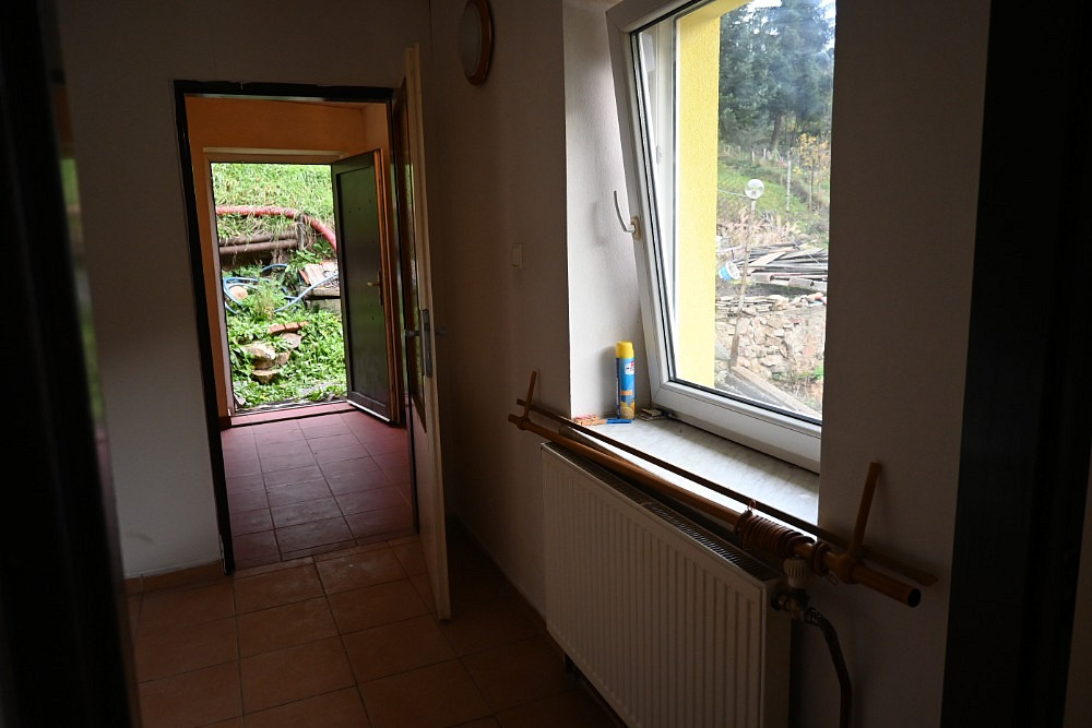 Rodinný dům po částečné rekonstrukci (rok 2012 - výměna krytiny včetně klempířských konstrukcí, v přední části domu nová plastová okna; rok 2015 - nové fasádní omítky; rok 2022 - vytápění domu včetně elektrického kotle, rekonstrukce podkroví). V přízemí zádveří, chodba, kuchyň, dva pokoje, skládek, koupelna (vana a umyvadlo), WC, dílna, schody na půdu; v podkroví (přístupné ze dvora, možnost zřízení přístupu z obytné části domu) chodba, kuchyňský kout, pokoj, koupelna (vana a umyvadlo), WC; teráska. Vytápění domu ústřední (elektrický kotel), ohřev teplé vody el. bojlerem. Dům je připojený na elektřinu, pitnou vodu a kanalizaci (na zemní plyn se lze v této části obce připojit). Vhodná modernizace domu. Na dvorku dřevník, skládek, zemní sklepy, za dvorkem je po schodech ve svahu situovaná zahrada se skleníkem a studnou na užitkovou vodu. Zastavěná plocha 199 m², ostatní pozemky 243 m². PENB nebyl doložen, klasifikační třída "G".