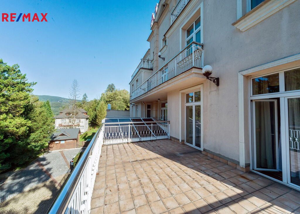 Čtyřpodlažní hotelová budova o rozloze cca 1 373,29 m² má 19 apartmánů a 54 lůžek. Standard je nejvyšší třídy: mramor, onyx, travertin, exotické dřevo, sklo, křišťál. Exkluzivní SPA: sauny, jacuzzi, masážní kabiny, koupelové pokoje. Restaurace s profesionálním kuchyňským zázemím. Druhá restaurace ve stavu „hrubé stavby“, k vlastní aranžaci. Konferenčně-bálový sál, prosklená veranda-kavárna, bar, elegantní lobby. Terasa s italskou zahradou a zralou vegetací. 30 parkovacích míst s možností realizace podzemního parkoviště. Na pozemku se nachází také rodinný dům o rozloze cca 239,17 m² s kompletním technickým zázemím a krby.