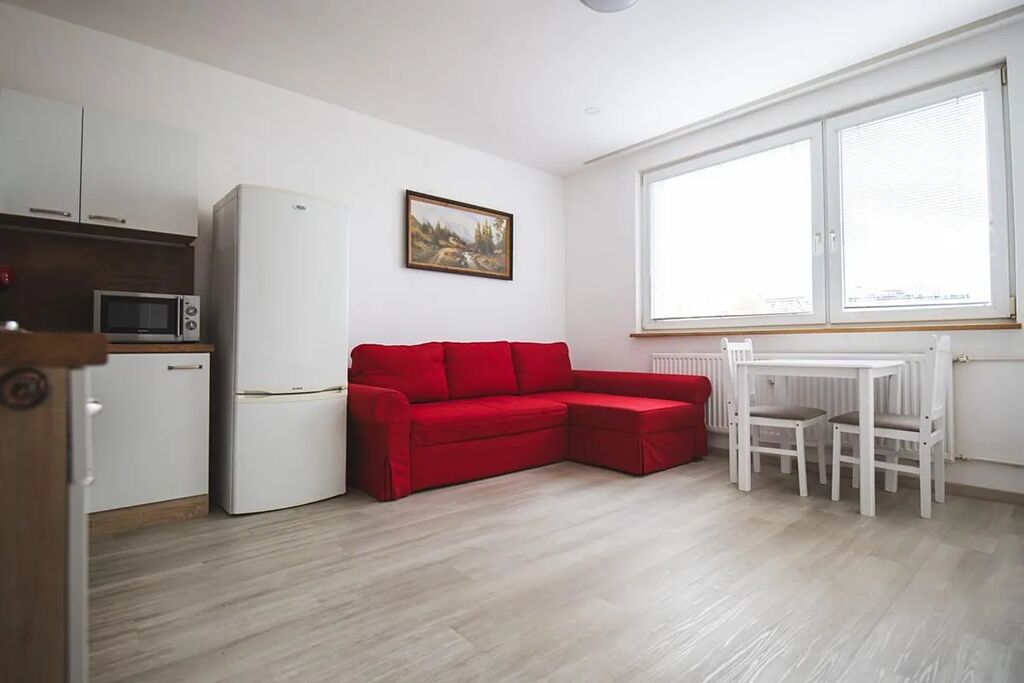 Nabízíme Vám k pronájmu příjemný plně vybavený byt s balkónem a sklepem. Skvělá lokalita hned vedle parku Gutovka a pár kroků od stanice metra Strašnická. Hned za hlavními dveřmi se nachází vstupní chodba s věšákem a vestavěnou skříní se zabudovanou pračkou. Odtud vedou dveře do hlavní místnosti s plně vybavenou kuchyňskou jednotkou, stolem se židlemi a velkou rozkládací pohovkou. Další dveře z chodby vedou do ložnice s prostornou šatní skříní, dalšími skříňkami a postelí IKEA HEMNES, kterou je možné zvětšit na dvoulůžko široké 160 cm. Z chodby se vchází též do koupelny se sprchovým koutem a toaletou. V blízkosti bytu se nachází velké množství zeleně a možností pro příjemnou procházku. Pro sportovní vyžití je zde park Gutovka s mnoha sportovišti včetně lezecké stěny. Nedaleko od bytu se nachází supermarkety Billa, Albert a Lidl. Mnoho restaurací a obchodů v nejbližším okolí. Veškerá další občanská vybavenost na dosah. Nájem: 22.000 Kč, zálohová platba na poplatky: 2.500 Kč plus přepis elektřiny. Kauce: 24.500 Kč, provize RK: 22.000 Kč. K dispozici ihned.
