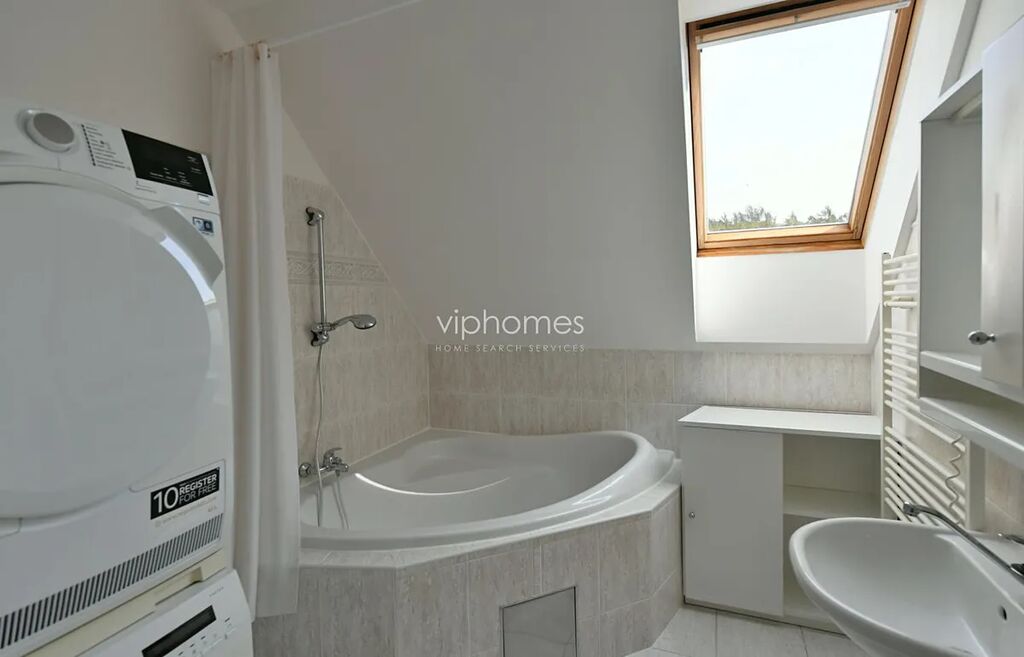 Telefonní linka, satelitní TV připojení, prostorná zahrada 873 m2. Dopravní spojení BUS 161, 254, 312 ke stanici metra Bořislavka / Dejvická na Vítězné náměstí. (cca 15 min.) Poplatky cca 15.000 Kč / měsíc.