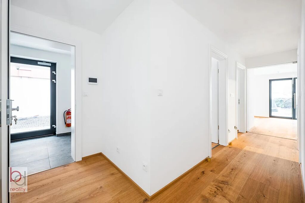 Koupelna vybavena vanou a sprchovým koutem,  umyvadlo, zrcadlo, WC.  Šatna vybavena vestavným nábytkem s policovým systémem.  Celkový perfektní dojem pak podtrhují dubové  podlahy,  předokenní žaluzie na všech oknech, podlahové vytápění ve všech místnostech, kamenná dlažba, sádrové omítky a mnoho ostatních - nadstandardně kvalitních prvků, které dotváří luxusní dojem celého bydlení. K dispozici od 01.01.2026.  Krásné  bydlení v centru města.  Byt je vybaven klimatizací.