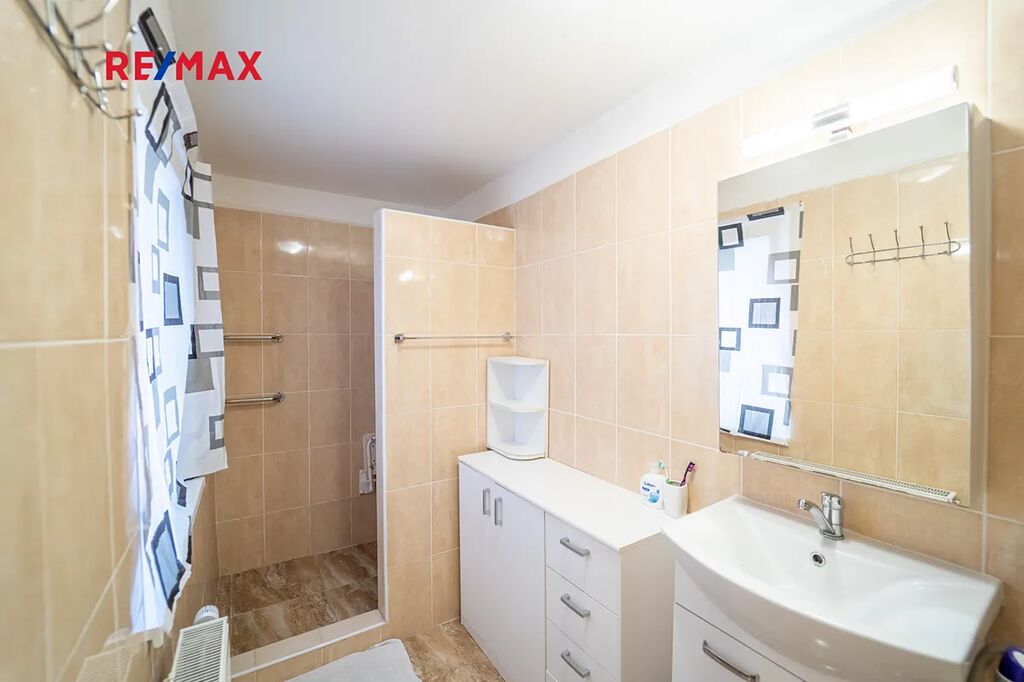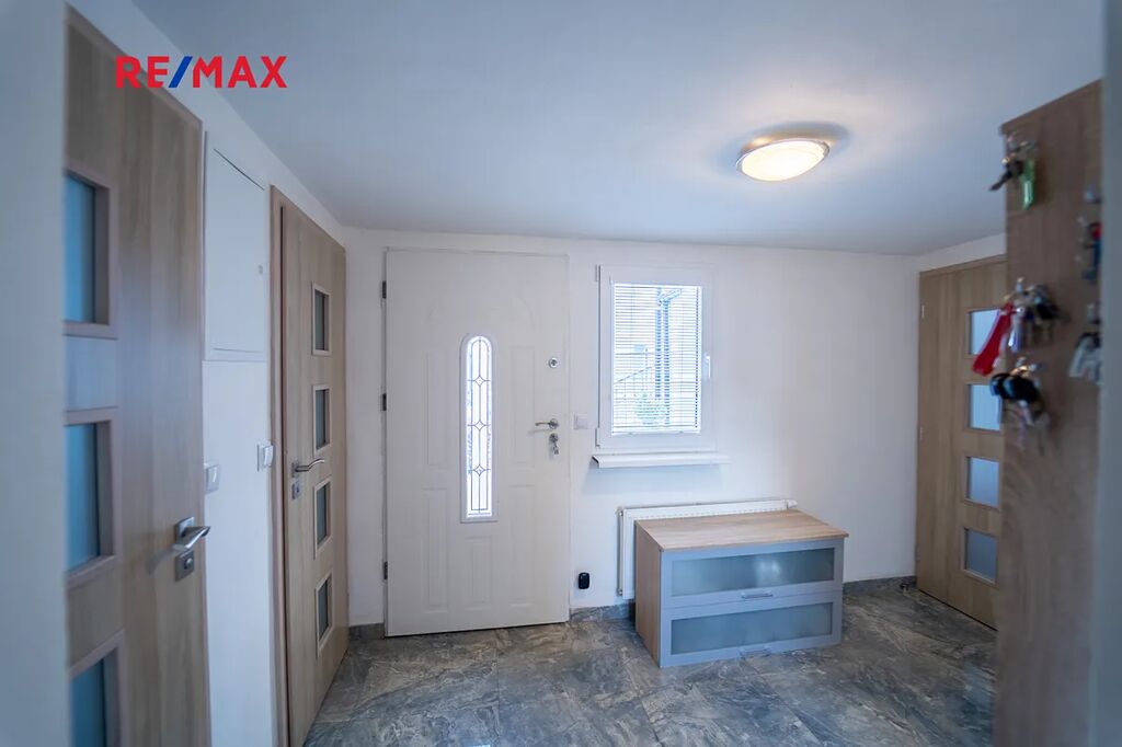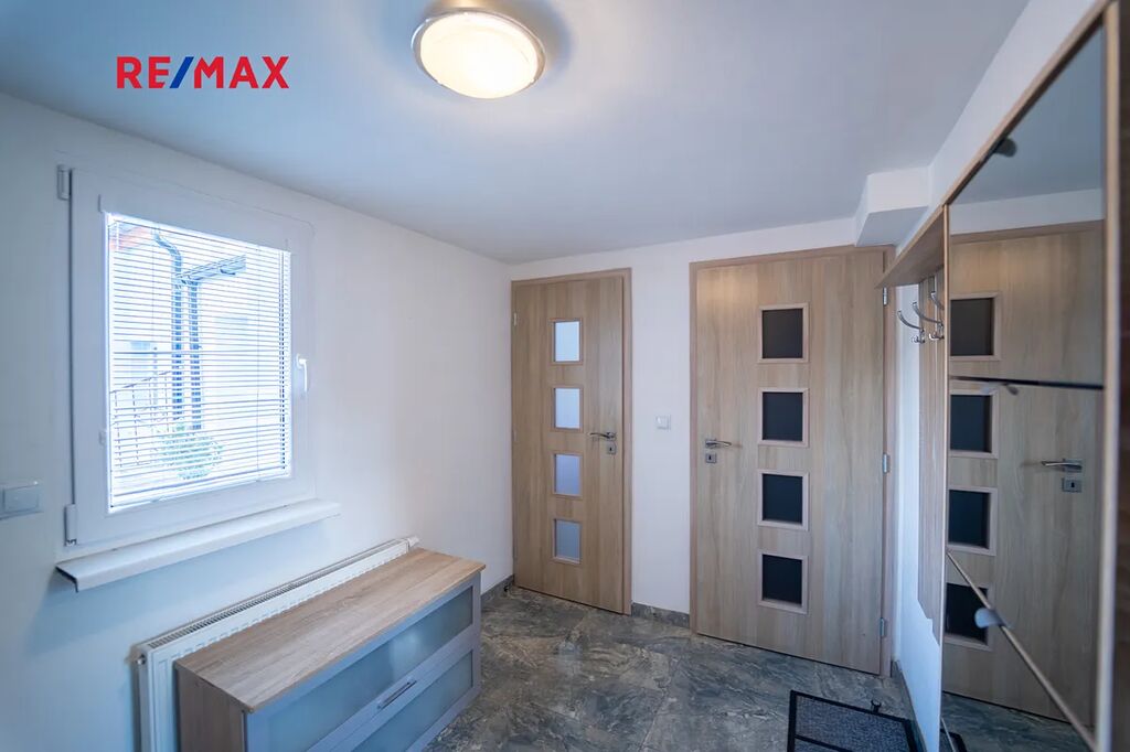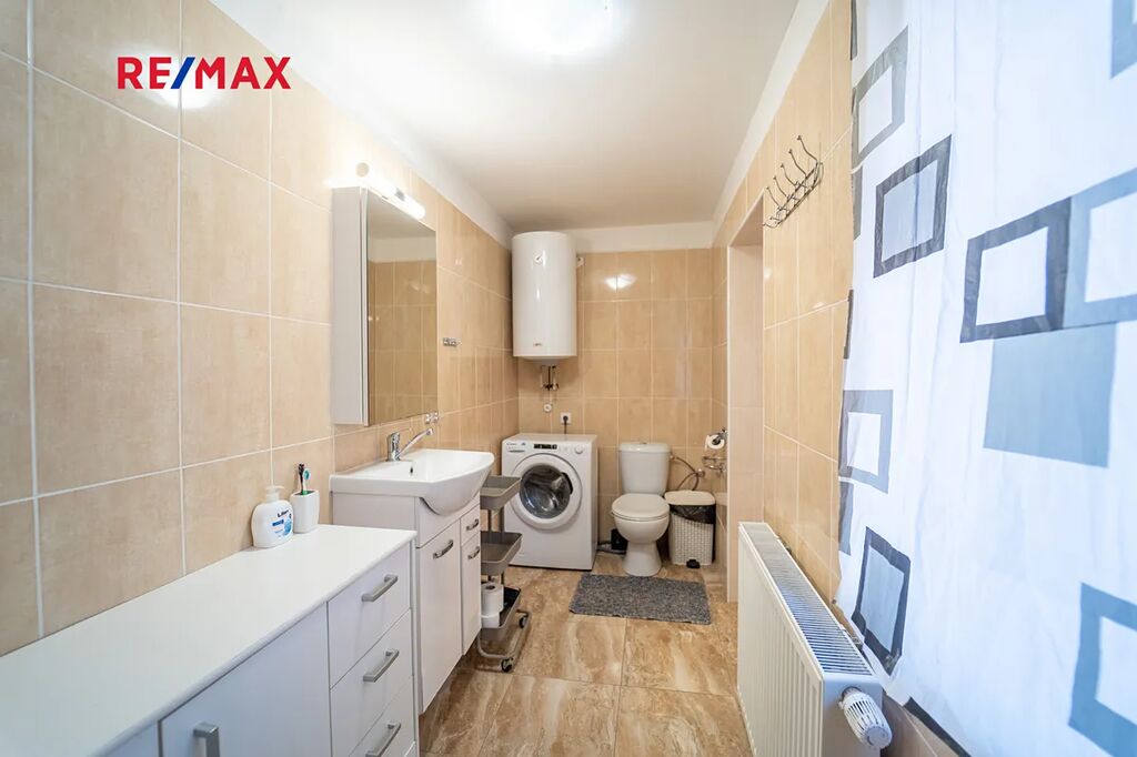 Dům je částečně podsklepený s komorou na potraviny, technickou místností s pračkou, sušičkou a bojlerem zn. DRAŽICE, 2 x pokoj a jedním pokojem pro hosty se samostatným vchodem z nádvoří. Obývací pokoj s oknem do ulice je součástí kuchyně s novou kuchyňskou linkou se spotřebiči, vše součástí domu a ceny. Spotřebiče: americká lednice zn. BEKO, horkovzdušná trouba zn. AEG, mikrovlnná trouba zn. Concept, sklokeramická deska zn. AEG, digestoř zn. Concept. Koupelna s rohovou vanou a sprchovým koutem, WC je samostatné s malým umyvadlem. Podlahy domu jsou plovoucí a kremnická dlažba s podlahovým topením v koupelně a v ostatních místnosti jsou osazeny radiátory.