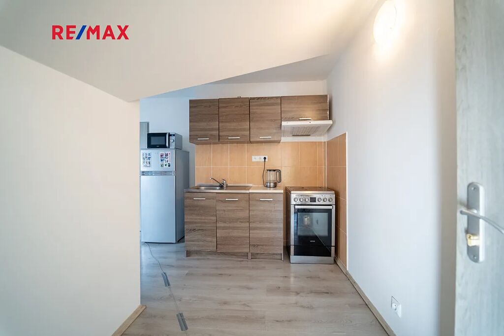 Společná chodba pro dva byty vedle sebe byt č. 2 o velikosti 2 +kk/cca 34,37m2 s koupelnou se sprchovým koutem a WC, byt má vlastní bojler, el. hodiny, je vybaven spotřebiči (lednice, el. sporák a trouba, digestoř, pračka, mikrovlnná trouba a nábytek)
