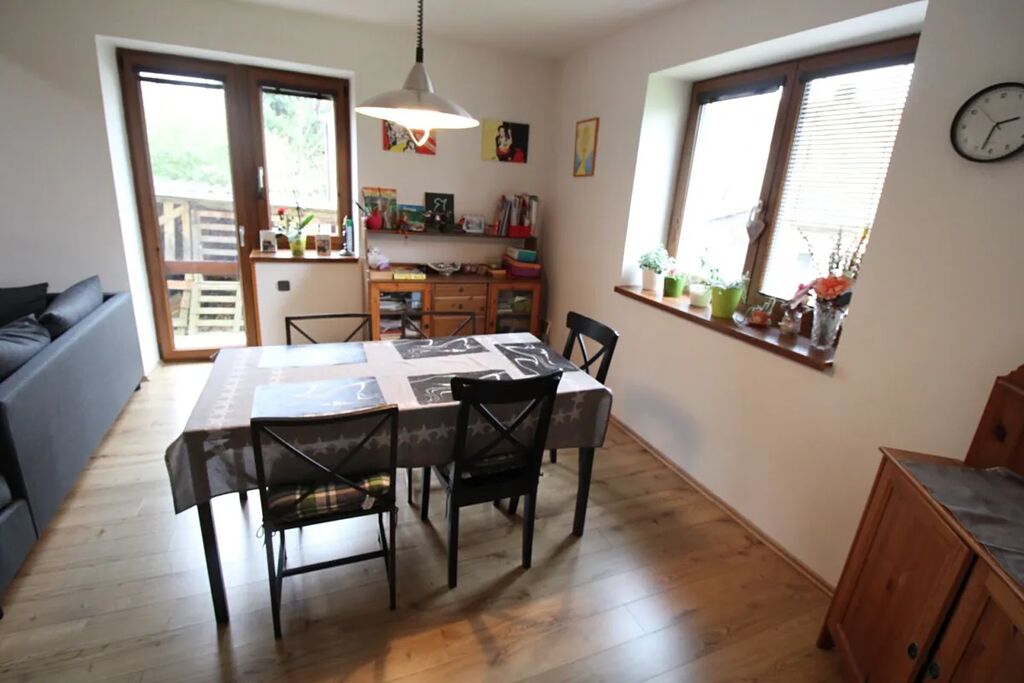 V přízemí domu se nachází velkorysý obývací pokoj s jídelnou, navazující na prostornou kuchyň. Kuchyňská linka včetně všech vestavných spotřebičů a jídelního stolu je součástí prodeje.