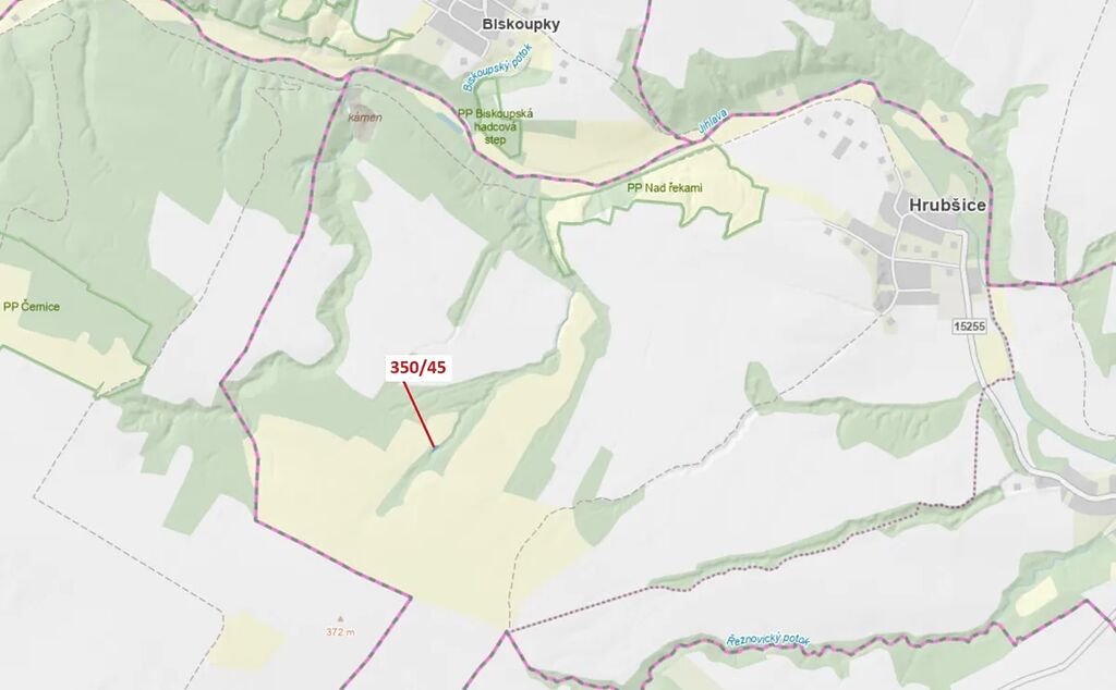 Lesní pozemek o výměře 183 m2, parcelní číslo 350/45, podíl 1/1, katastrální území Hrubšice, obec Ivančice, obec s rozšířenou působností Ivančice, okres Brno-venkov, Jihomoravský kraj.