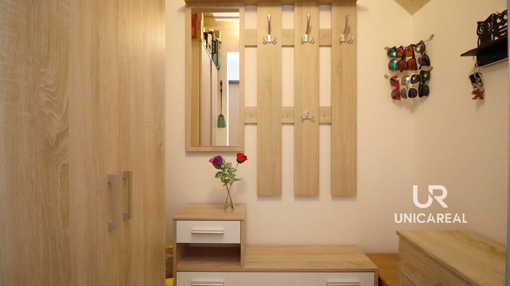 • V přízemí bytu se nachází také koupelna s vanou, sprchovým koutem a toaletou, praktická šatna.