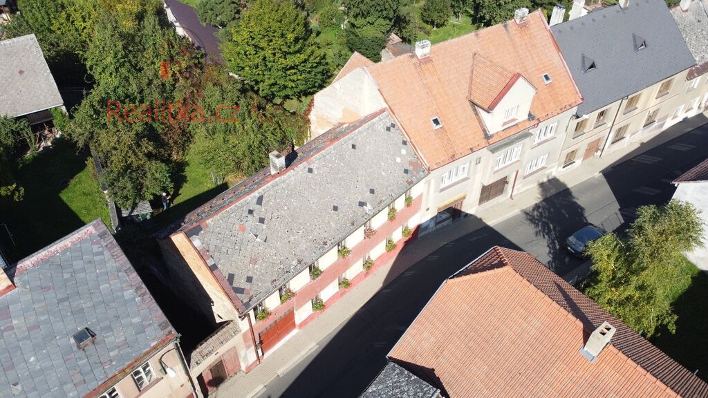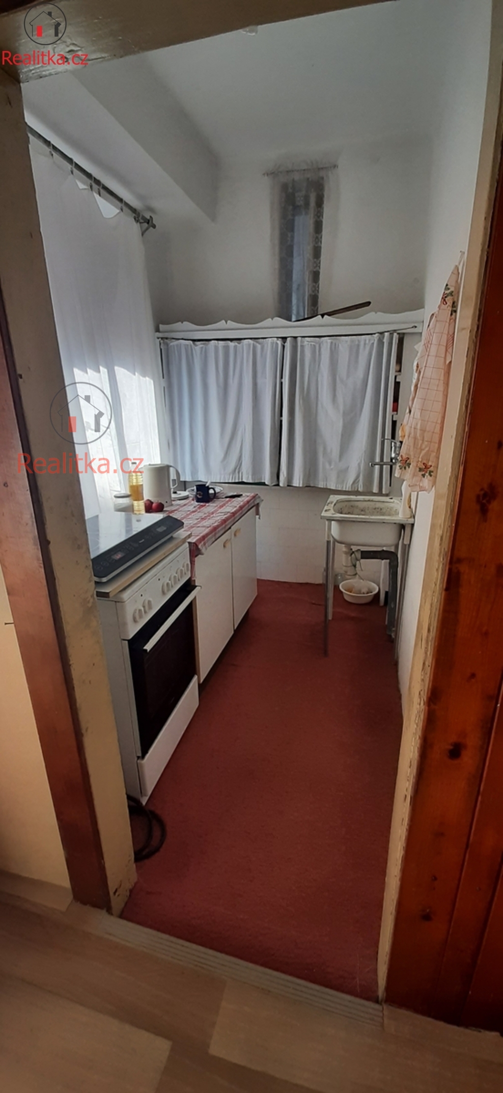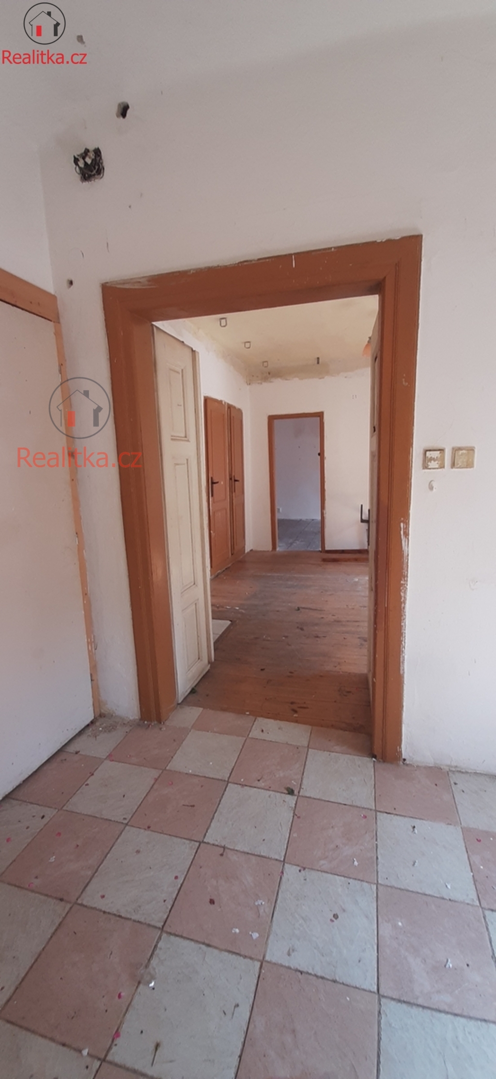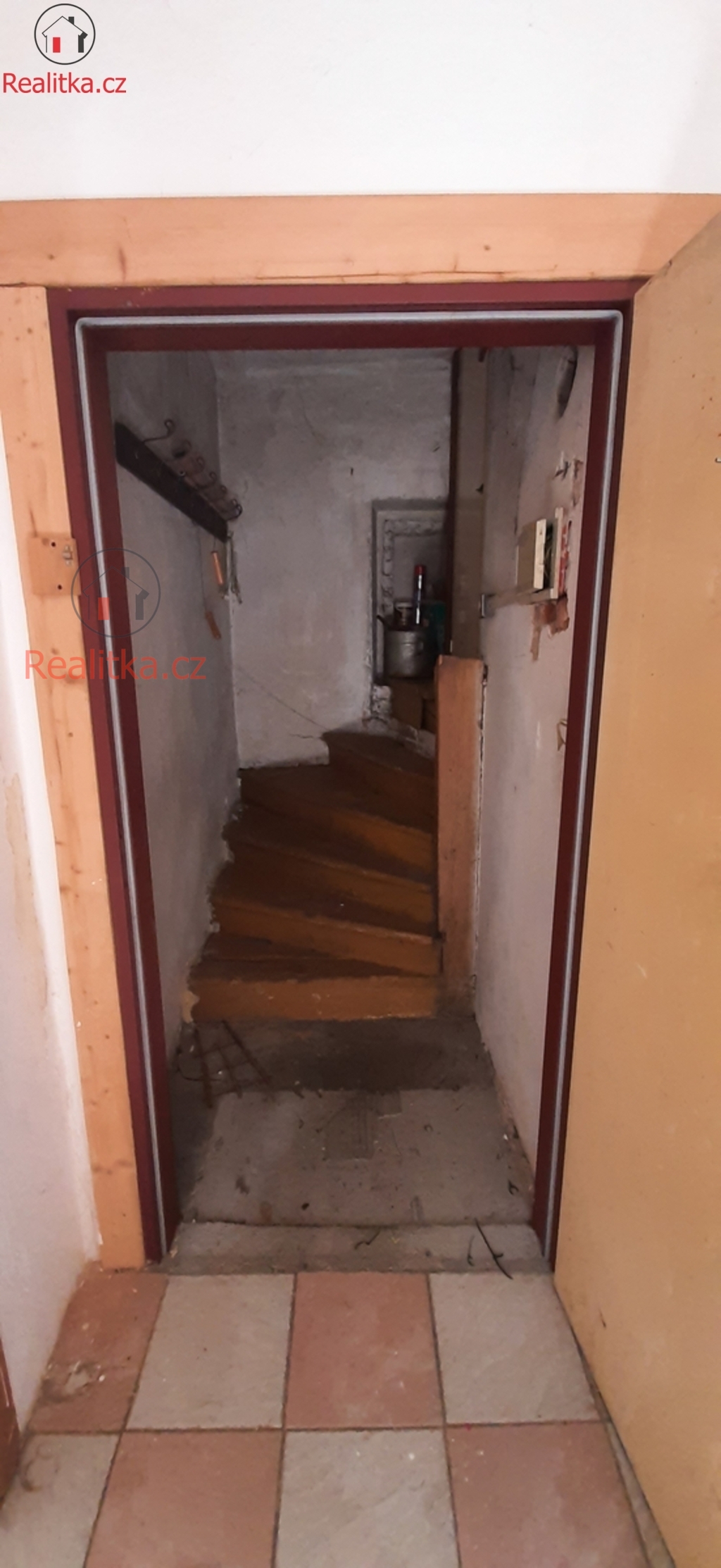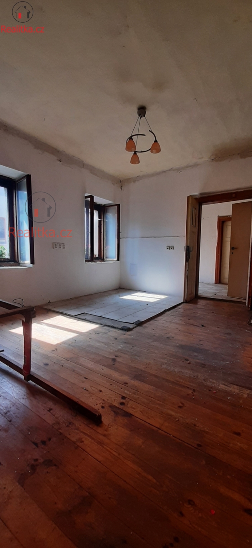Dispozice domu: Přízemí: vstupní chodba, koupelna s WC, kuchyň, obývací místnost, ložnice. Patro: předsíň, vstup po schodech do patra, 4 pokoje, koupelna s WC, komora a vstup na půdu.  Dům je podsklepený, s průjezdem na pozemek. Je napojen na obecní vodovod a elektřinu a kanalizaci. Vytápění je řešeno elektrickým kotlem a případně kamny Petry, v domě lze využít také krbové vytápění. Ve sklepě pod domem jsou celkem 3 patra sklepů, spodní patro je vytesané do skály - pro zajímavost fotografie sklepa lze poslat emailem.  Nemovitost je v udržovaném stavu, ale nabízí dostatek prostoru pro rodinu i možnost úprav dle vlastních představ.  Cena k jednání.