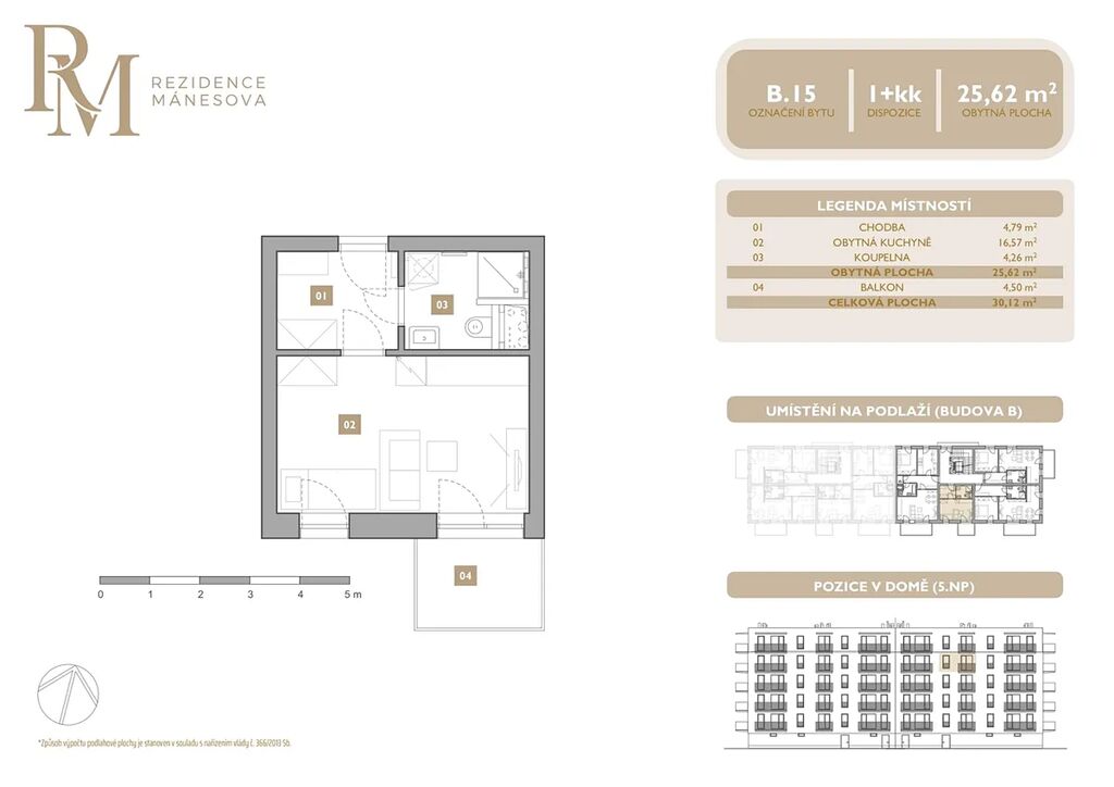 Moderní byt 1+kk s balkonem v projektu Rezidence Mánesova v Lipníku nad Bečvou nabízí praktické a útulné bydlení v klidné lokalitě s výbornou dostupností centra města. Byt je vybaven vinylovými podlahami, teplovodním podlahovým topením a kuchyňskou linkou v ceně bytu. Samozřejmostí je příprava pro venkovní žaluzie a u bytů ve 4.–6. NP také příprava na klimatizaci. Interiérové prvky je možné zvolit ve světlé (2NP, 4NP, 6NP) nebo tmavé variantě (3NP, 5NP).