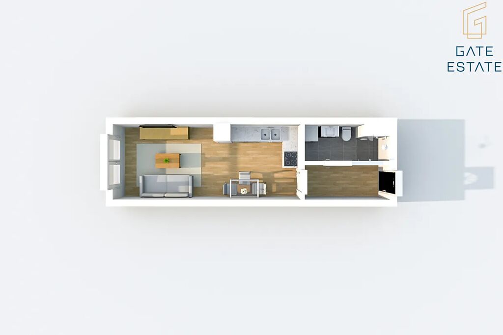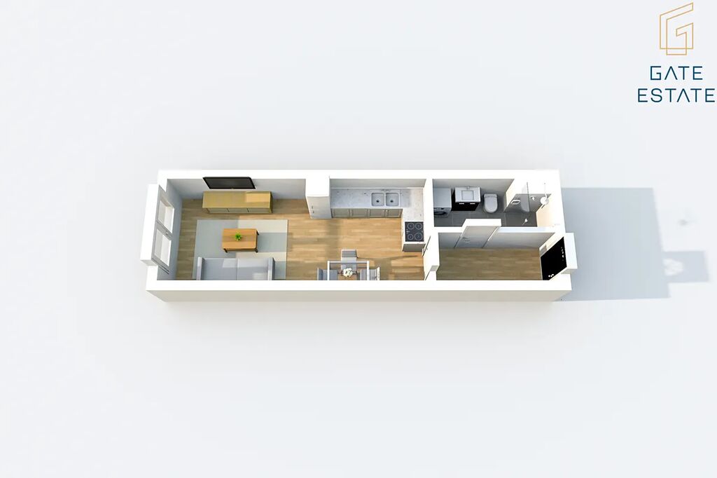 V tomto inzerátu uvádím byt 1kk, 33m2 + sklep, umístěný v 2NP. Byt je vybavený kuchyňskou linkou na míru vč. spotřebičů výše uvedených. Pro lepší představu jsme pro Vás vytvořili 3D půdorysy (rozmístění nábytku je pouze orientační) pro lepší čitelnost a vizualizaci budoucí kuchyně. V barevném půdorysu, který uvádíme ve fotografiích, se jedná o byt č. 1.6.