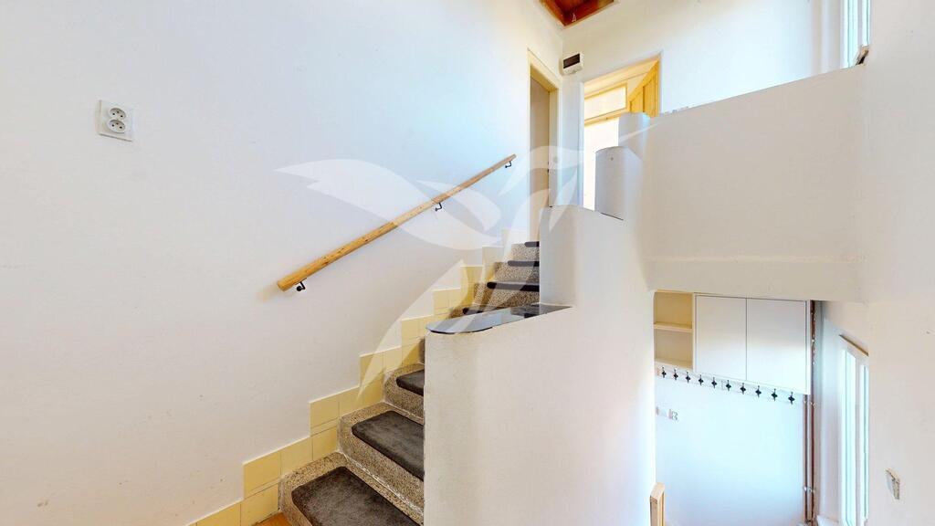 Dům je dvoupodlažní a dispozičně je řešen 4+1, v prvním patře se nachází chodba se schodištěm, pokoj vč. kuchyňské linky, komora, koupelna s toaletou a samostatný pokoj. Ve druhém patře je zádveří, samostatný pokoj a šatna, chodba k dalším dvěma samostatným pokojům a toaleta. Dům se nabízí částečně zařízený viz foto, nebo po domluvě.