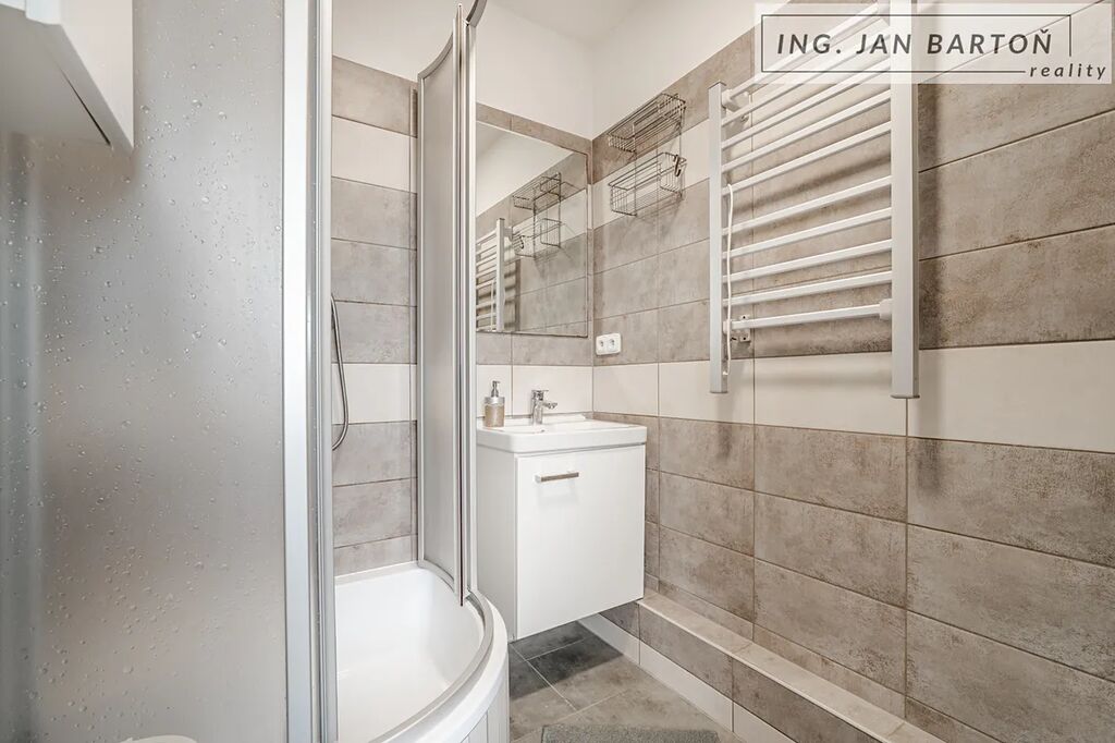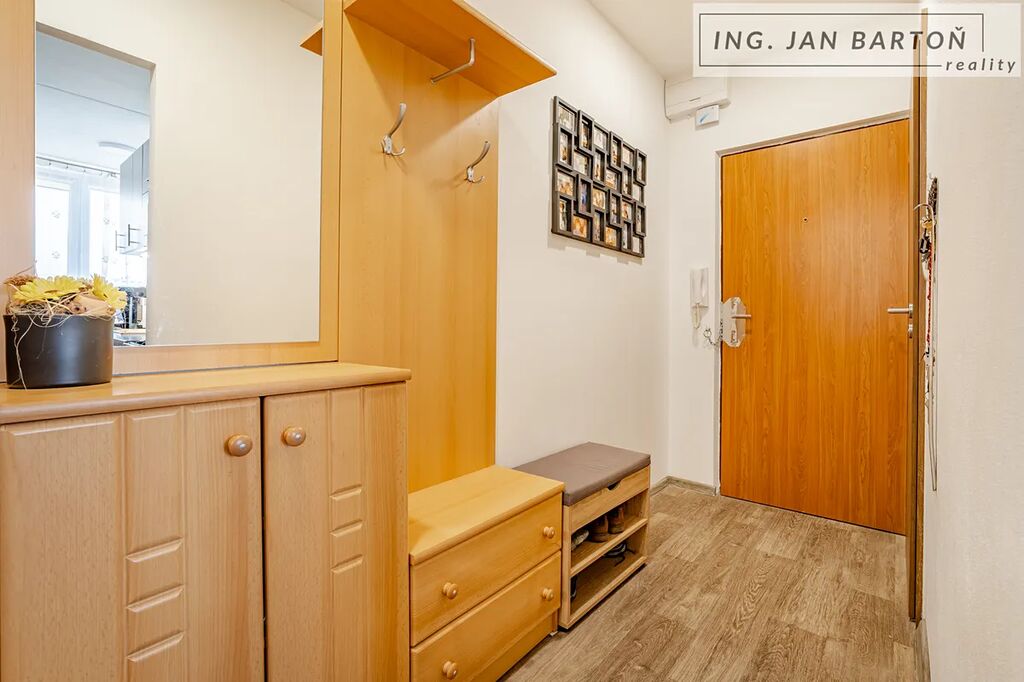 Byt je po rekonstrukci, čistý, připraven k nastěhování. Vybaven kuchyňskou linkou včetně sporáku a myčky, šatními skříněmi v ložnici a obývacím pokoji a skříňkami s botníkem v předsíni. Ostatní vybavení na fotografiích není součástí pronájmu a je již z bytu vystěhováno.