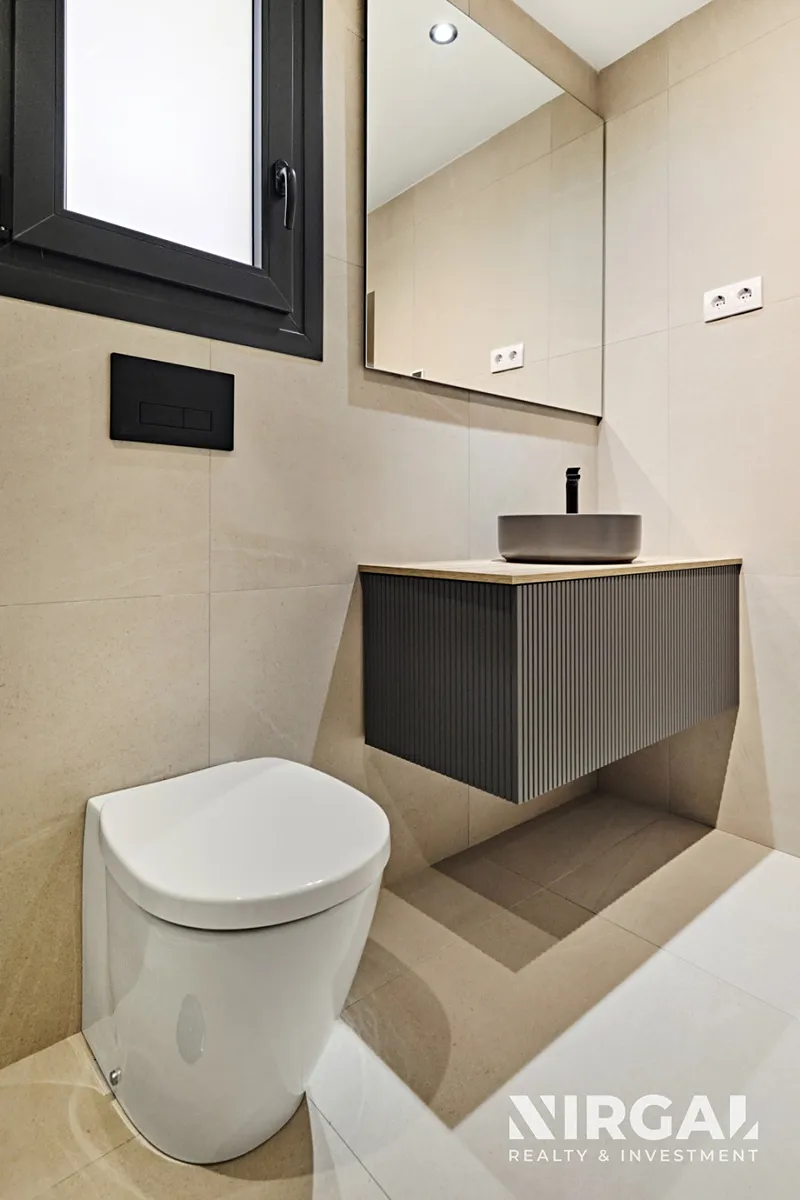 Dispozice a vybavení: prostorný a světlý obývací pokoj spojený s moderní kuchyní (již instalovanou), 1 ložnice a slunná terasa o rozloze 20 m². V ceně je zahrnuto parkovací místo a sklep (trastero). Orientace jihovýchod zaručuje přirozené světlo po celý den. V ložnicích jsou instalovány elektrické žaluzie, které poskytují maximální pohodlí a soukromí. Součástí bytu jsou také vestavěné skříně a individuální elektrické topení.
