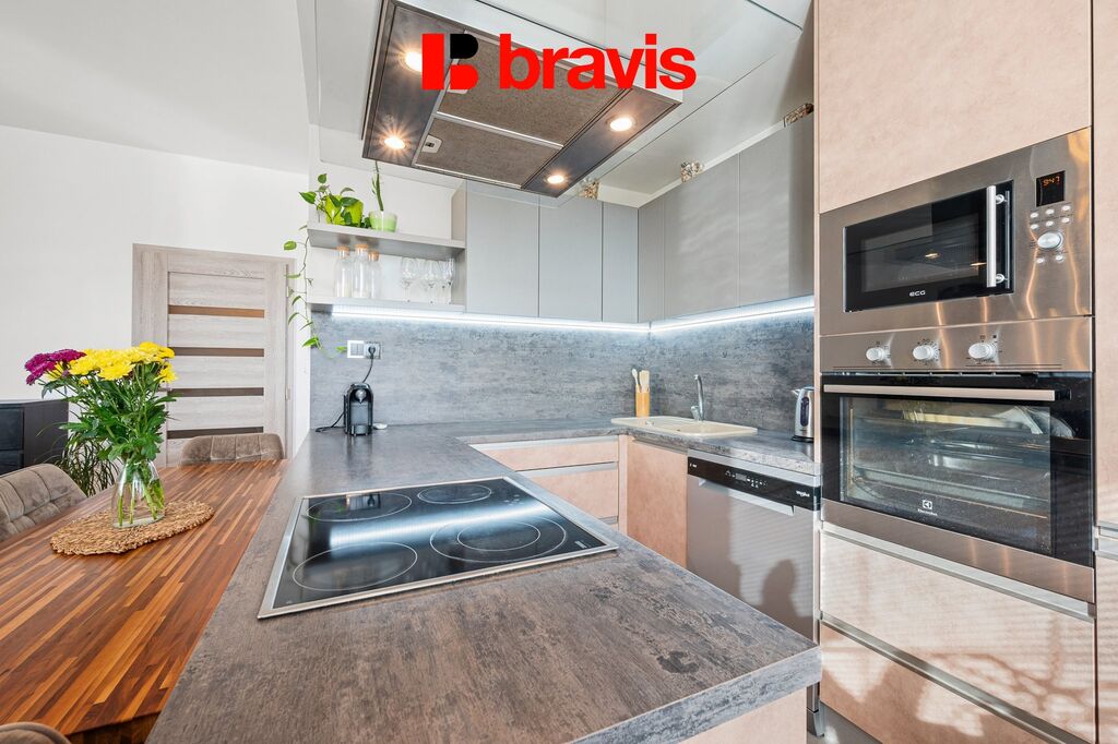 • Moderní kuchyňská linka – kompletně vybavená všemi potřebnými spotřebiči včetně myčky nádobí, lednice, mrazáku a trouby. Vše je v perfektním stavu připraveno k okamžitému používání.