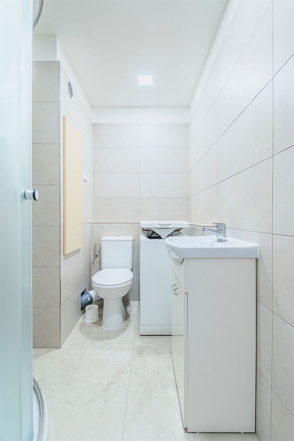 Dispozice bytu: vstup předsíň pokoj s výstupem na lodžii kuchyně s jídelním koutem koupelna se sprchovým koutem a WC. K bytu náleží sklepní kóje v suterénu budovy.
