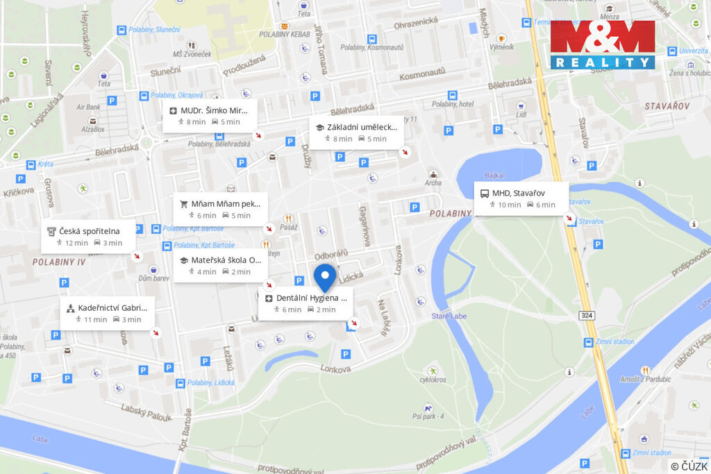 Lokalita patří k nejvyhledávanějším v Pardubicích. V bezprostřední blízkosti je mateřská i základní škola, dětská hřiště, supermarket, lékárna, pošta, restaurace i zastávka MHD. Jen pár minut chůze se nachází polabinský park a cyklostezka podél Labe, ideální pro procházky a rekreaci.