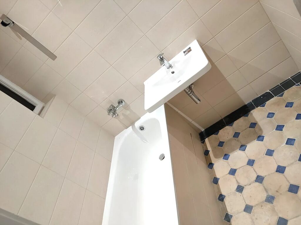 Koupelna je samostatná s vanou (bude dodán ještě topný žebřík) a WC je také samostatné.
