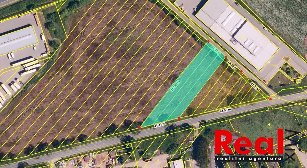 PLATNÉ STAVEBNÍ POVOLENÍ na výstavbu haly a kanceláří. Prodej komerčního pozemku o CP 2501m2 v k.ú. Rajhrad s vydaným stavebním povolením na výstavbu haly o ZP 339m2 a stavby pro administrativu o ZP 93m2. Možnost zastavění i větší části vč. možnosti přikoupení dalšího pozemku. Pozemek je přístupný z hlavní komunikace vedoucí na Syrovice (ul. Stará pošta), je v rovině a je lichoběžníkového tvaru, proto následující rozměry pozemku uvádíme jako průměrné - délka cca 95m, šířka cca 25m.
