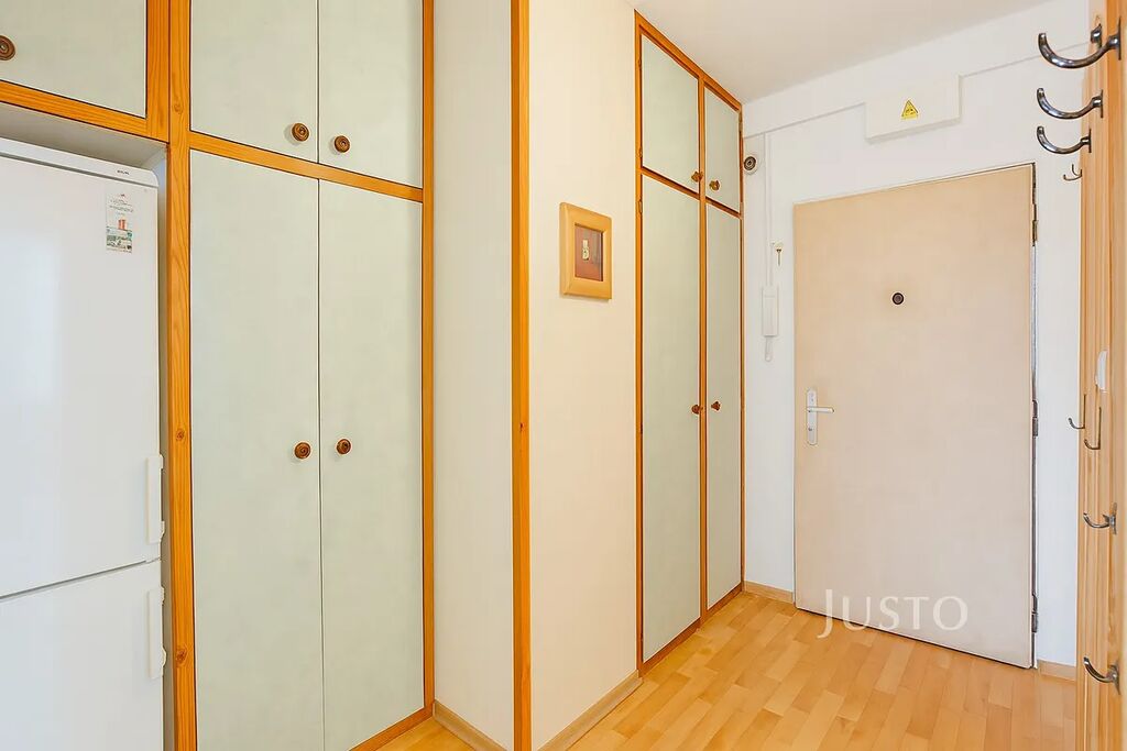 Dispozice bytu nabízí prostorný obývací pokoj (16,2 m²), dva samostatné pokoje (ložnice a dětský pokoj, každý 12,3 m²), kuchyň s jídelní částí (11,1 m²) a předsíň (5,6 m²) s praktickým úložným prostorem/komorou (2,1 m²). Byt je částečně vybaven a připraven k nastěhování či případné modernizaci dle vlastních představ. K bytu náleží sklep, což oceníte pro další možnosti uskladnění.
