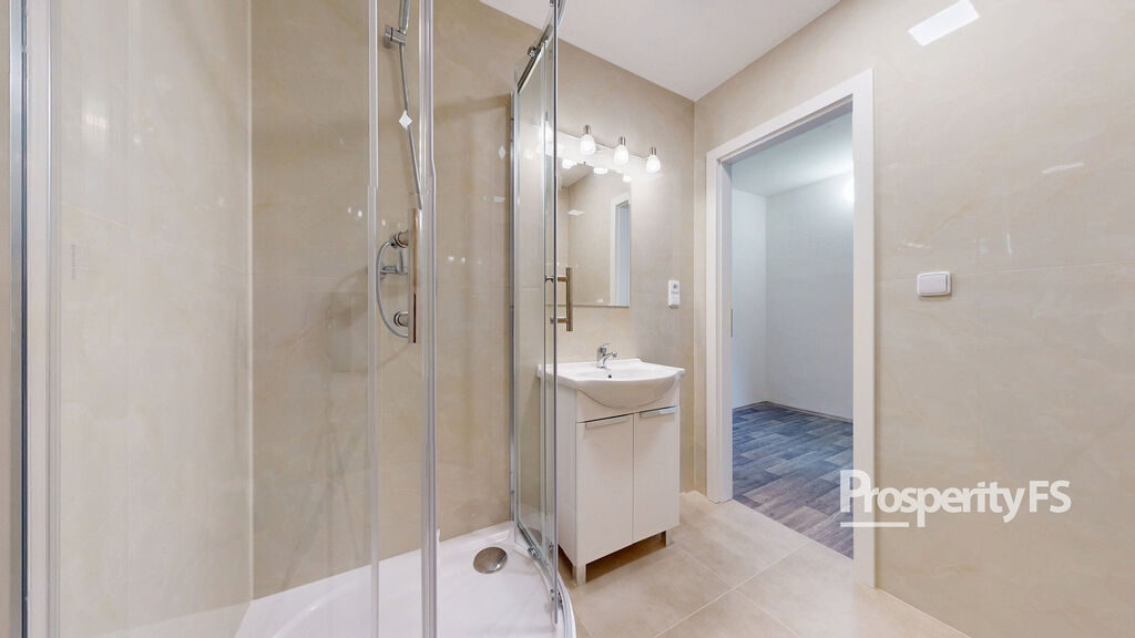 Koupelna prošla kompletní rekonstrukcí a je vybavena sprchovým koutem. Toaleta je samostatná a rovněž nově zrekonstruovaná.