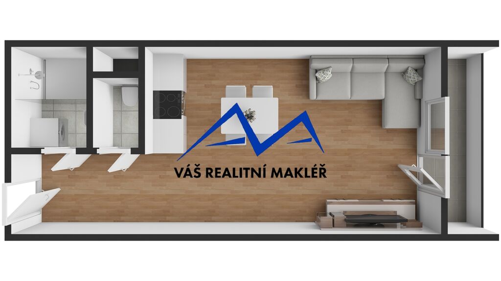 Byt je ideální jako startovací bydlení pro jednotlivce či pár, ale také jako výhodná investice s možností jistého pronájmu.
