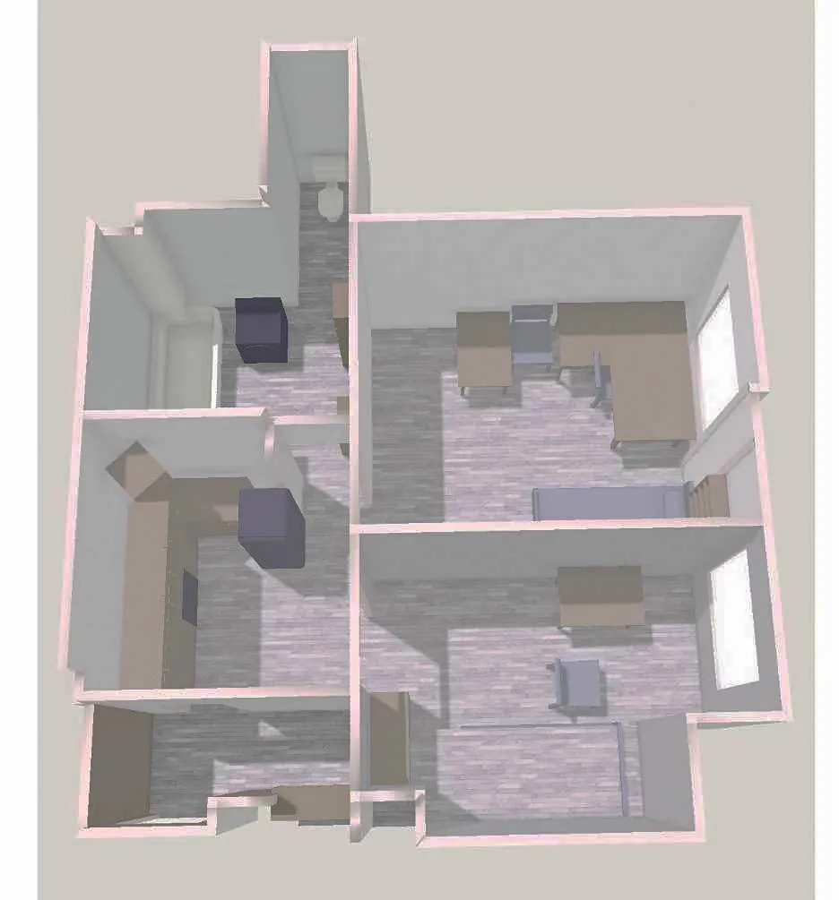 Byt je umístěn v přízemí domu, přičemž pod ním se nacházejí ještě dvě podlaží, celkem má dům 8 podlaží. V roce 2015 prošel kompletní rekonstrukcí, která zahrnovala výměnu elektroinstalace, rozvodů vody i odpadů. V roce 2021 byla instalována nová vysoká dřevěná okna, jež nabízejí příjemný výhled do klidného, zelení porostlého dvorku.