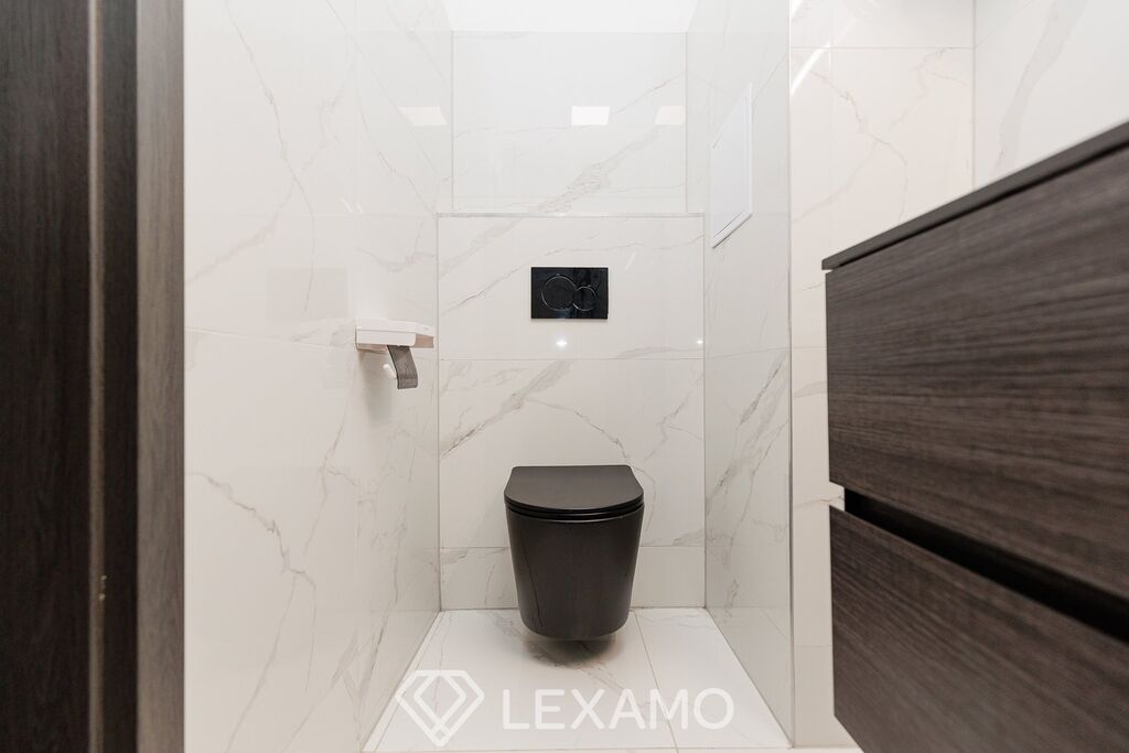 Jednotka je ve velmi krásném stavu, neboť v nedávné době proběhla rekonstrukcí. Součástí vybavení je kuchyňská linka se všemi vestavěnými spotřebiči a koupelnové skříňky.